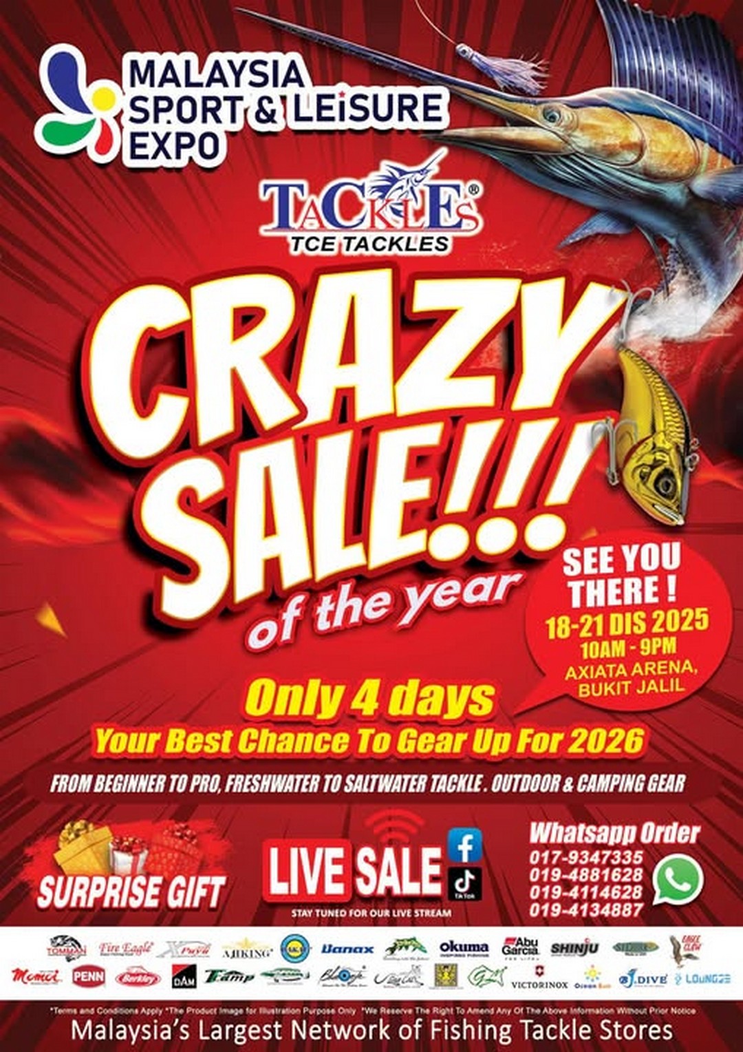 If there is one event in December 2025 that anglers, outdoor lovers and camping enthusiasts across Malaysia should be paying very close attention to, it is the TCE Tackles Crazy Sale happening at the Malaysia Sport & Leisure Expo. This is not one of those routine, predictable sales where discounts are modest and choices are limited. TCE Tackles is positioning this as a once-a-year, go-all-out clearance and showcase, and from what has been announced, it truly lives up to the hype.