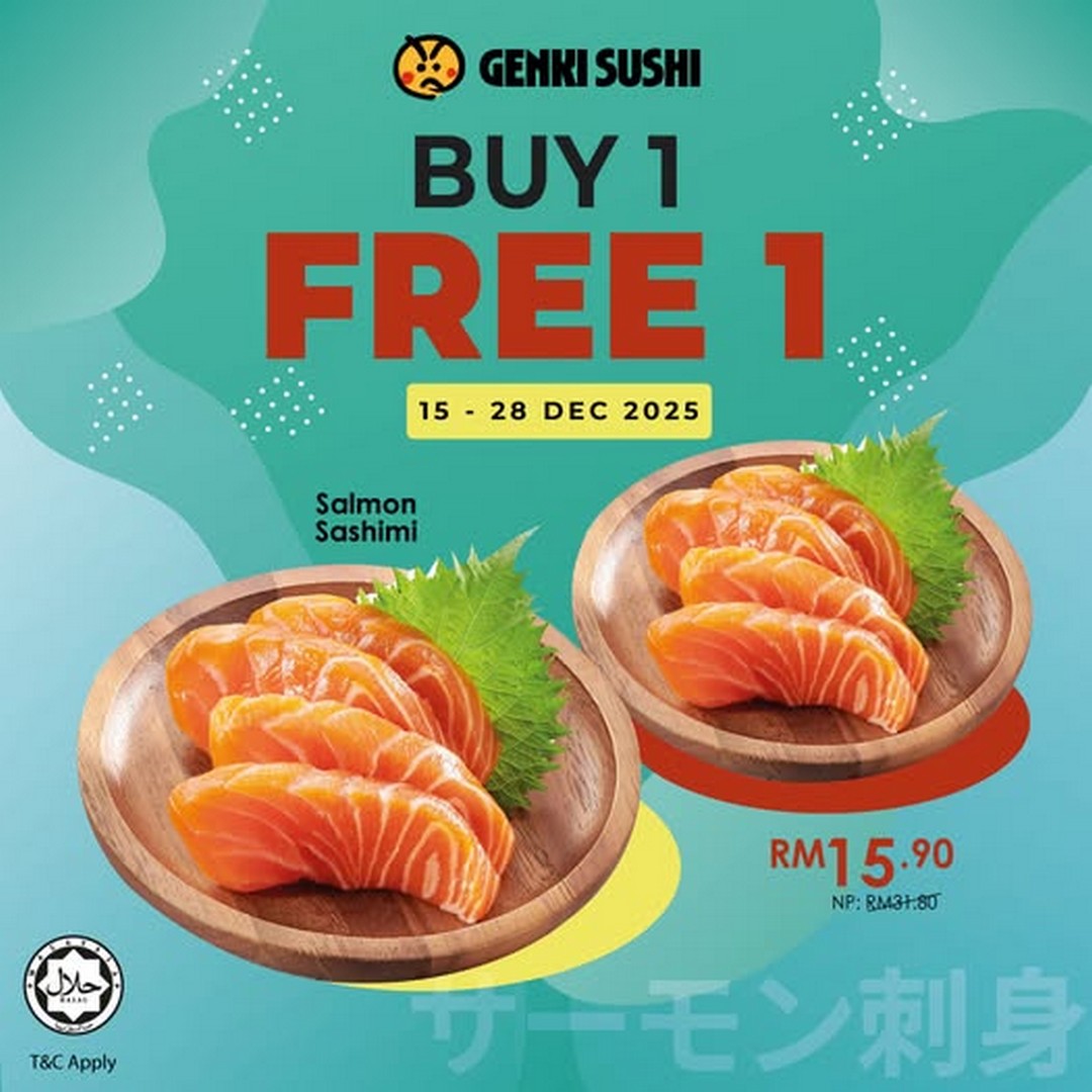 So, if you’ve been waiting for an excuse to enjoy salmon sashimi, this Buy 1 Free 1 promotion at Genki Sushi is your golden opportunity. Mark your calendars, gather your sushi-loving friends, and head to the nearest Genki Sushi outlet. Whether you’re celebrating the festive season or just treating yourself after a busy week, this deal promises great flavours, generous portions, and a memorable dining experience. Don’t miss out—the promotion runs only from 15 to 28 December 2025, and once it’s over, the offer disappears.