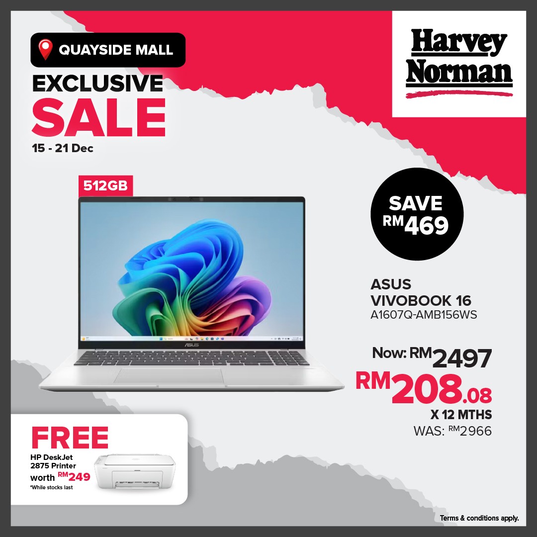 In conclusion, Harvey Norman Malaysia’s Quayside Mall Exclusive Sale from 15th to 21st December 2025 is a must-visit event for anyone looking to invest in quality home appliances, electronics, or furniture while enjoying substantial savings. With up to 75% off, both in-store and online, shoppers can treat themselves, their homes, or their loved ones without breaking the bank. The combination of variety, quality, convenience, and limited-time exclusivity makes this an event worth prioritising in your December shopping calendar. Don’t wait too long—the clock is ticking, and the best deals are likely to go fast.