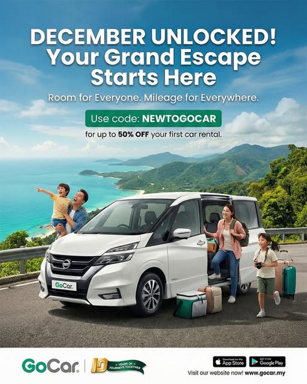 Download the GoCar app today, use the promo code NEWTOGOCAR, and embark on a Grand Escape this festive season.