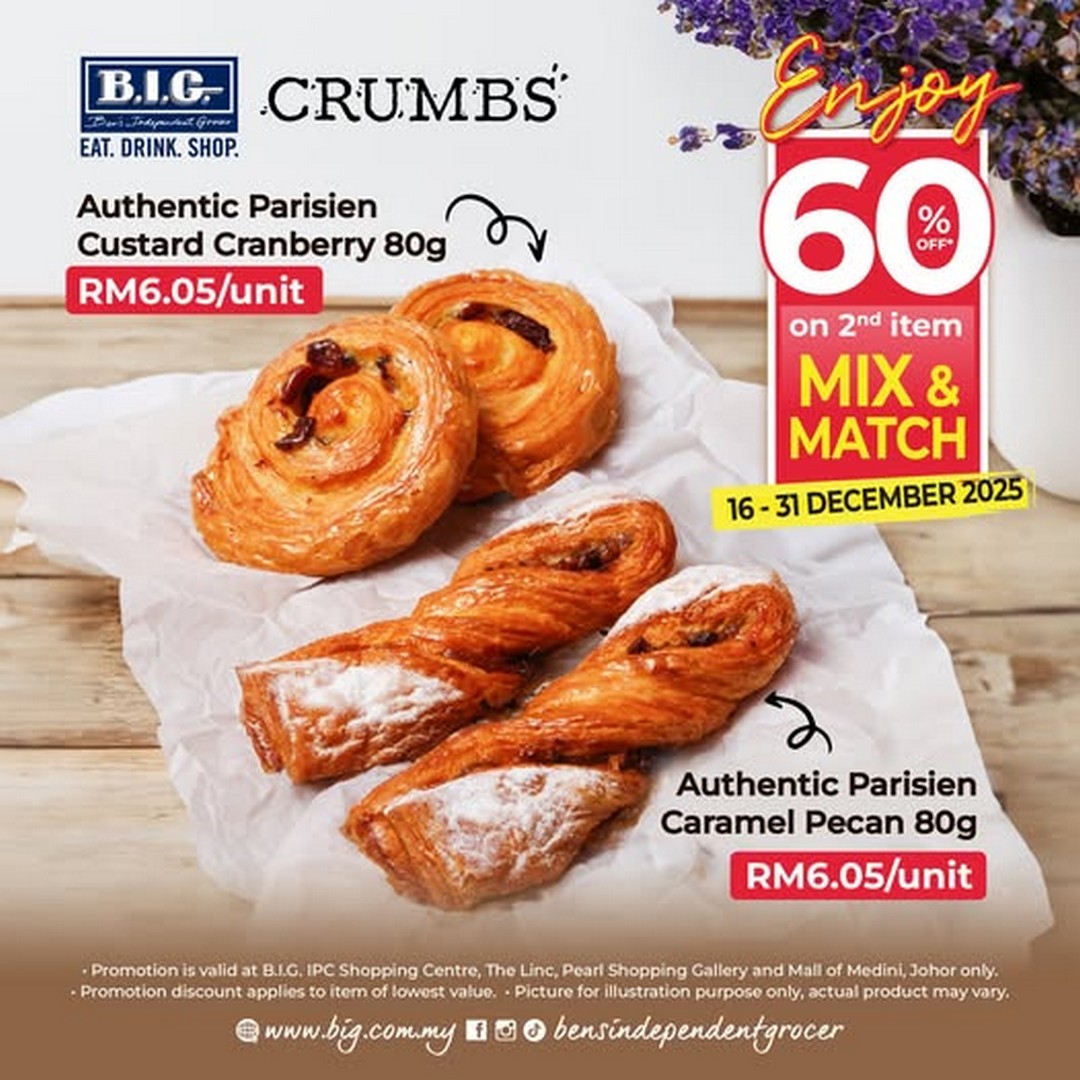 If there’s one thing that makes a trip to Ben’s Independent Grocer even more delightful, it’s the chance to grab freshly baked pastries at an irresistible price. For those with a sweet tooth or anyone who simply enjoys the comfort of buttery, golden-brown treats, CRUMBS has an offer that’s too good to miss. From now until 31 December 2025, patrons can enjoy a whopping 60% off their second pastry when they mix and match their favourites.