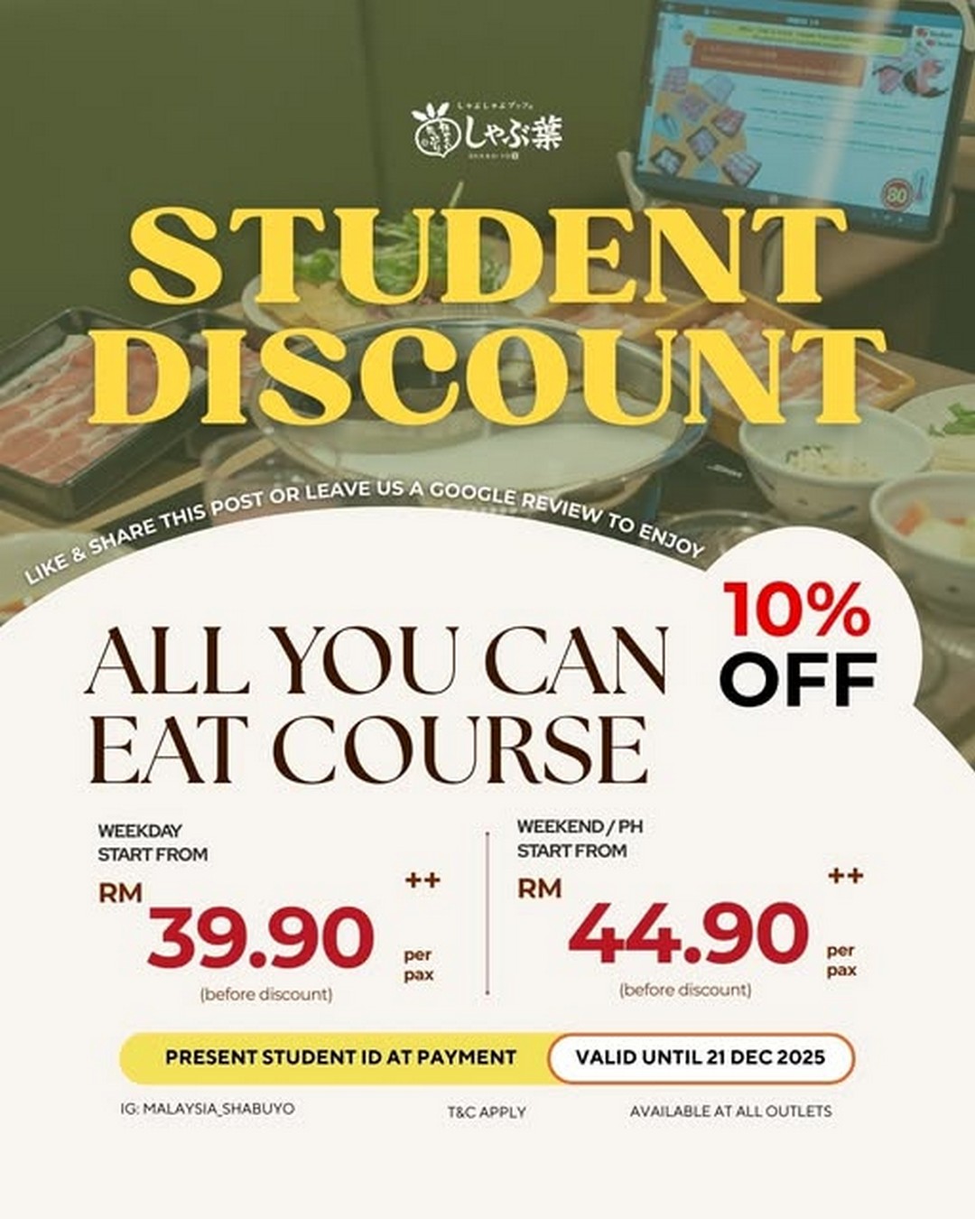 For students looking to balance quality and affordability, this promotion is a perfect match. With the convenience of multiple outlets nationwide, there’s likely a SHABU-YO nearby, making it easy to plan a quick lunch, dinner, or even a weekend treat without extensive travel. The limited period from 16 to 21 December 2025 adds a sense of urgency, so planning ahead is essential to ensure participation in this student-friendly offer.