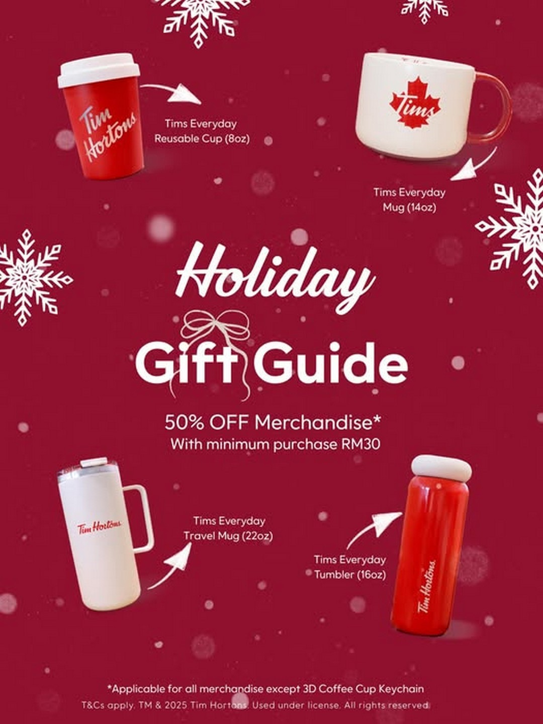 From 18 December 2025 onward, Tim Hortons Malaysia is rolling out a festive merchandise promotion that makes gifting easier, more affordable, and far more meaningful for coffee lovers. With selected Tims merchandise enjoying up to 50% off when customers spend RM30 and above, this promotion strikes a sweet balance between indulgence and practicality. Whether shoppers are buying gifts for others or treating themselves after a long year, there is something comforting about bringing home a well-designed cup or mug that will be used daily.
