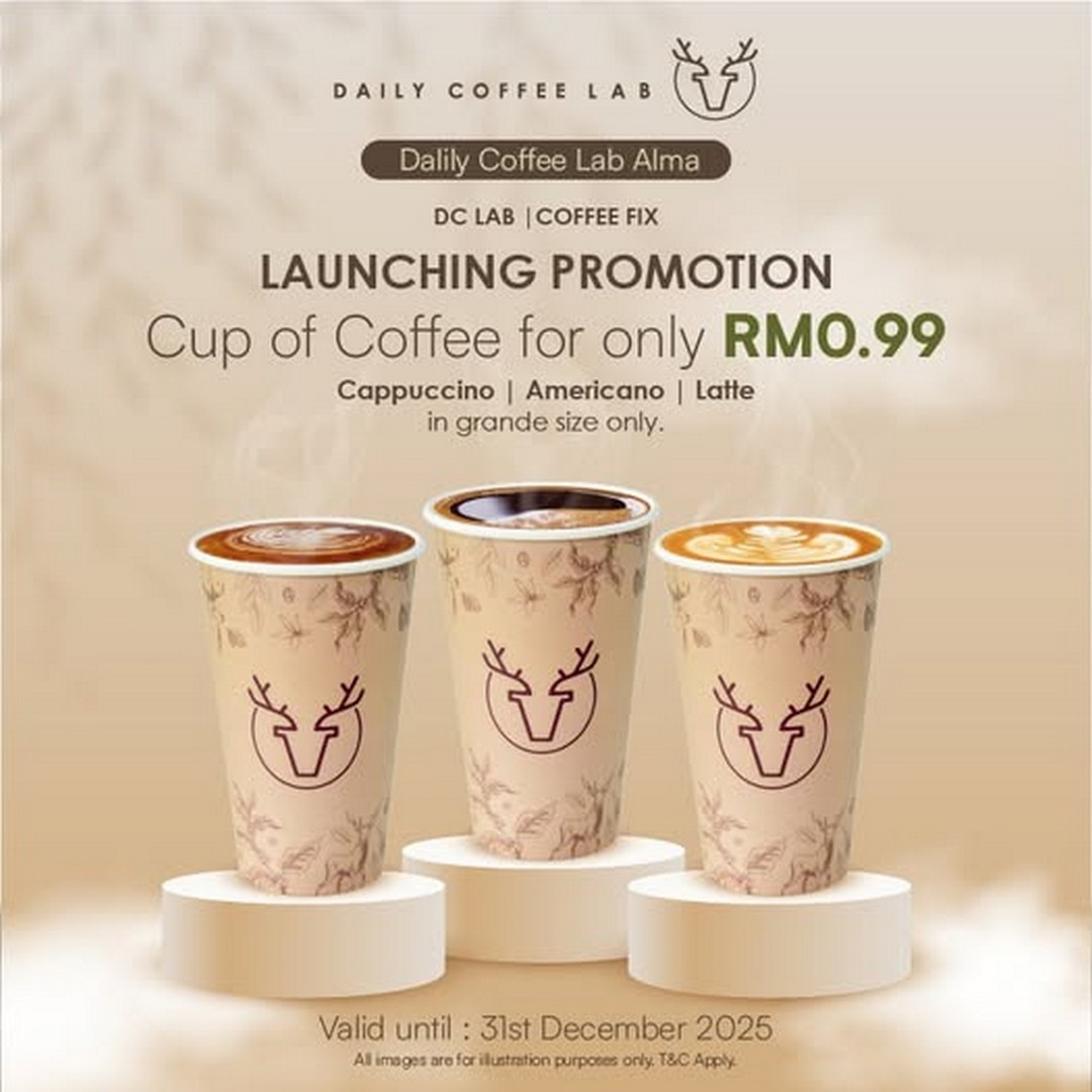 What truly sets this reopening apart, however, is the launch promotion. To celebrate the return and rebrand, Daily Coffee Lab Alma is offering Grande-sized Americanos, Lattes, and Cappuccinos for just RM0.99. This offer is available exclusively through the Daily Coffee App Reward system and is valid until 31 December 2025, or until the limited redemptions run out.