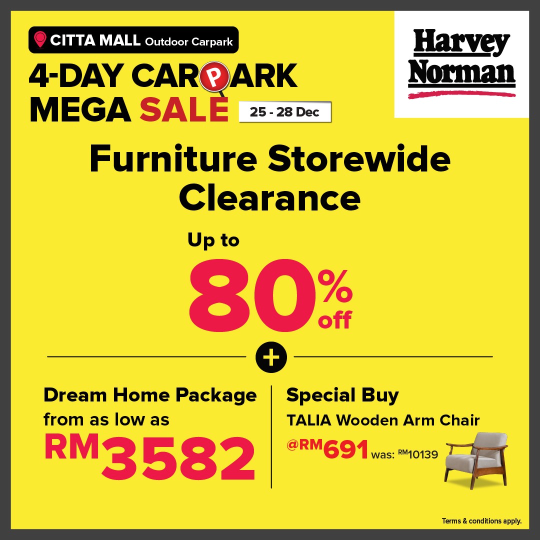 If you have been waiting for the perfect moment to grab home appliances, furniture, or other household essentials at unbeatable prices, this is it. Harvey Norman Malaysia is rolling out a spectacular 4-Day Carpark Mega Sale at CITTA Mall Outdoor Carpark, and it promises savings of up to 80% on a wide range of items. This is not just another sale; it is a chance for shoppers to take advantage of massive discounts on high-quality products that are otherwise priced at a premium.