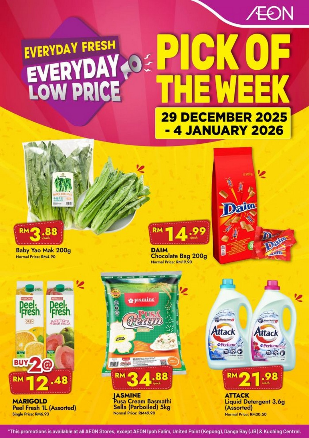 Check Local Availability: Although most AEON stores are participating, it is important to confirm stock at the nearest outlet to avoid disappointment, especially for high-demand items like Jasmine Pusa Cream Rice or DAIM chocolates.