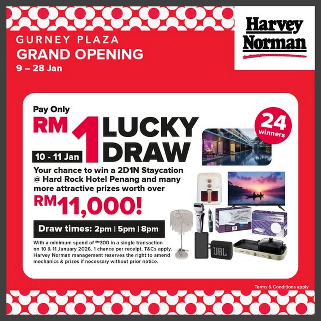 Penang shoppers, it’s time to mark your calendars because something truly spectacular is coming your way! Harvey Norman Malaysia is bringing a grand opening event at Gurney Plaza from 9th to 28th January 2026, packed with jaw-dropping deals, exciting activities, and a chance to enjoy a shopping experience like no other. For those who are always on the lookout for great bargains and unique promotions, this is one event that deserves a spot at the top of their must-visit list.