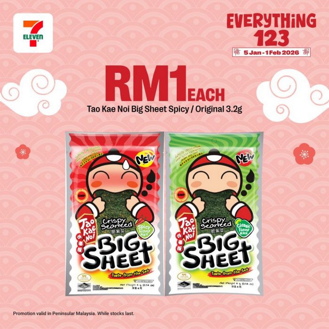 The Everything 123 promotion is available at 7-Eleven stores nationwide from 5 January to 1 February 2026. While most items are stocked nationwide, certain products such as Dahfa Dried Fish Fillet, Tao Kae Noi Big Sheet, Pokka Melon Milk, and Lipton Ice Lemon Tea are only available in Peninsular Malaysia. It’s advisable to check with your nearest 7-Eleven outlet to confirm availability before heading out.