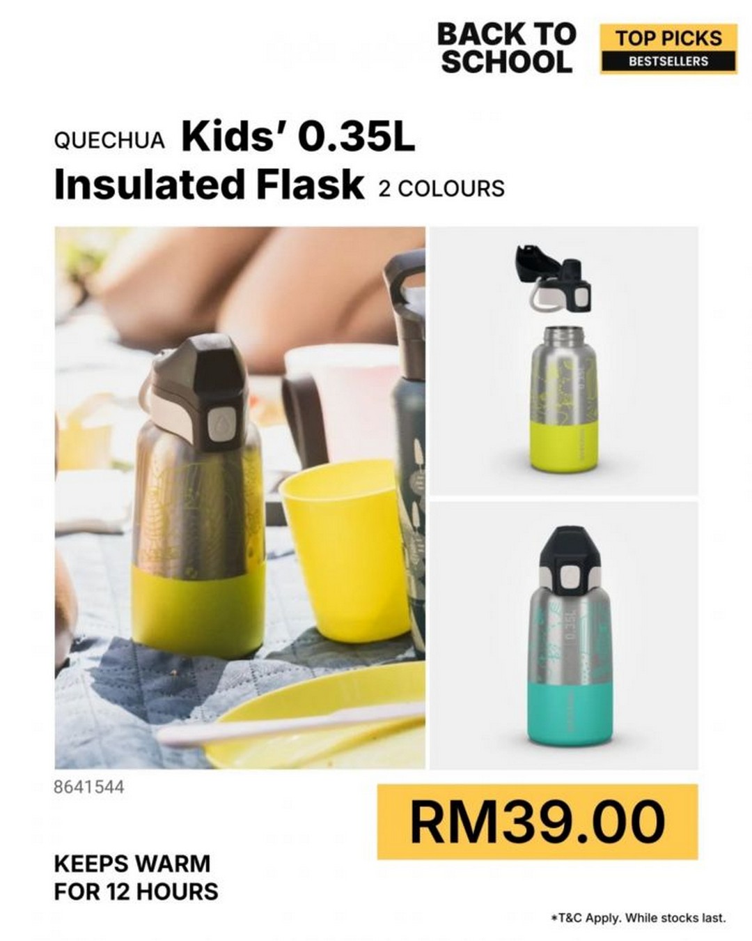 Hydration is an important part of the school routine, and Decathlon has the perfect solution with the QUECHUA Kids’ 0.35L Insulated Flask. Designed to keep beverages warm for up to 12 hours, this flask ensures your child can enjoy a hot drink throughout the day. Available in two colours and priced at RM39, it’s a practical addition to any school bag.