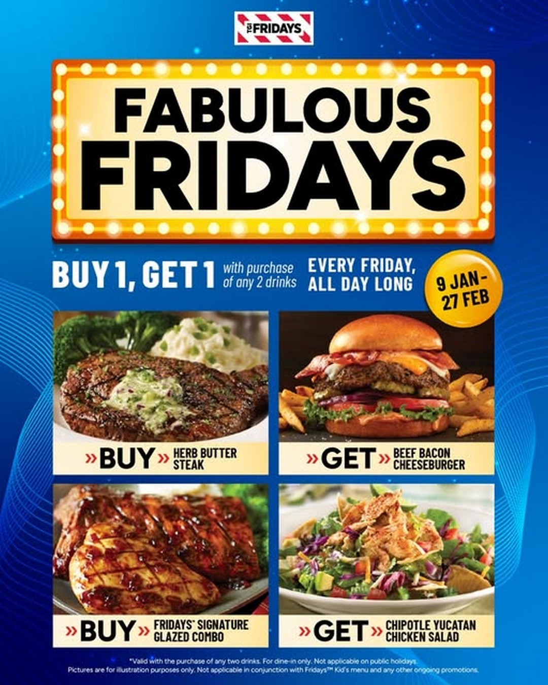 From 9 January until 27 February 2026, TGI Fridays Malaysia is running Fabulous Fridays, where diners can enjoy a Buy 1 Get 1 deal on selected main courses when they purchase any two drinks. The promotion is available every Friday, all day long, and it applies across participating TGI Fridays outlets in Malaysia. For anyone who enjoys casual American dining, hearty portions, and a lively atmosphere, this is a deal that fits perfectly into end-of-week plans.