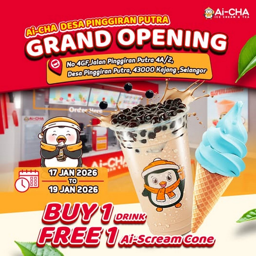In conclusion, the Ai-CHA Desa Pinggiran Putra grand opening from 17th to 19th January 2026 is a promotion that offers more than just a complimentary ice cream cone. It’s about celebrating the joy of a refreshing drink, sharing moments with loved ones, exploring a new venue, and enjoying a small but meaningful indulgence. The combination of taste, quality, convenience, and festive atmosphere makes this promotion a must-visit for anyone in the area. Make sure to mark your calendar, plan your visit, and experience this special occasion for yourself.