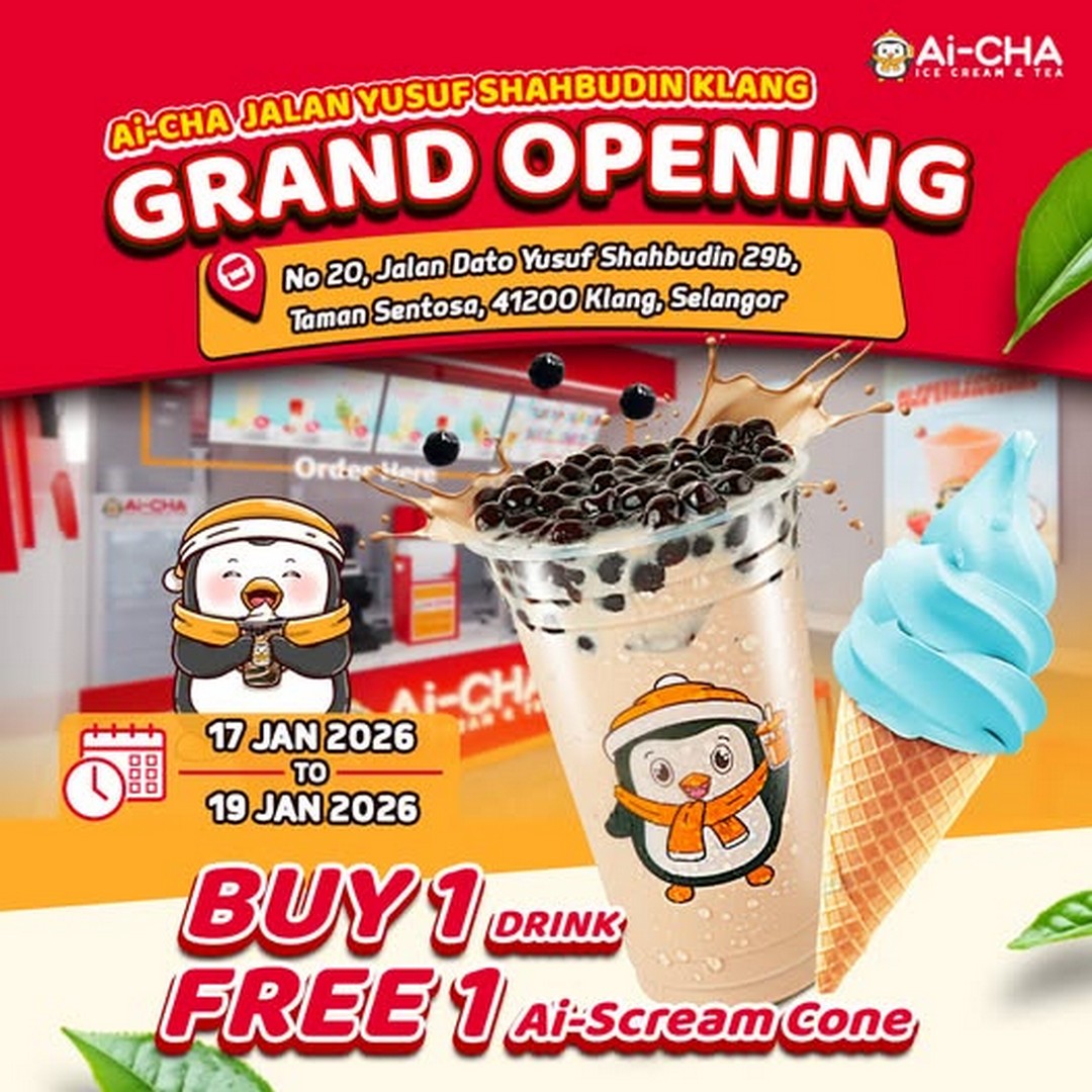 In summary, the Ai-CHA Klang grand opening from 17 to 19 January 2026 is a must-visit event for anyone who enjoys bubble tea, sweet treats, and a lively, community-focused atmosphere. With every drink purchase earning a complimentary ice cream cone, operating hours from 10:00am to 10:00pm, and a convenient location, this promotion makes it easy for locals and visitors alike to stop by and celebrate. Whether you’re in it for the drinks, the ice cream, the photos, or just a fun outing with friends and family, there’s plenty of reason to make your way to Ai-CHA. Don’t miss out — come sip, chill, and celebrate!