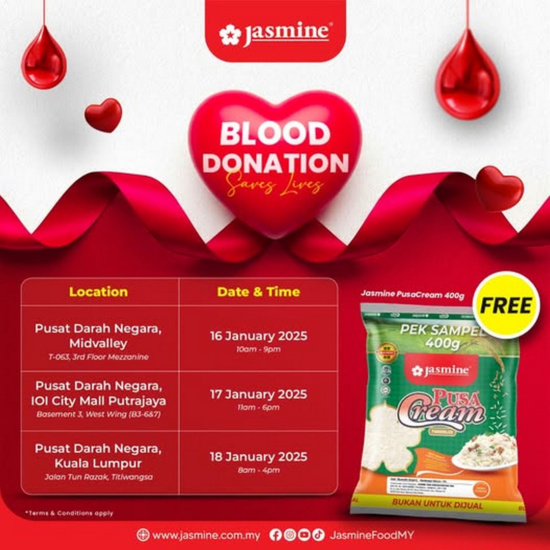 From 16 to 18 January 2026, Jasmine Food Malaysia is partnering with the National Blood Centre to encourage Malaysians to step forward and donate blood. This is not positioned as a flashy promotion in the usual retail sense, but rather a thoughtful campaign that combines social responsibility with a small but practical token of appreciation. For those who successfully donate blood during the campaign period, Jasmine Food Malaysia is offering a complimentary 400g pack of PusaCream Basmathi Jasmine Rice, while stocks last.