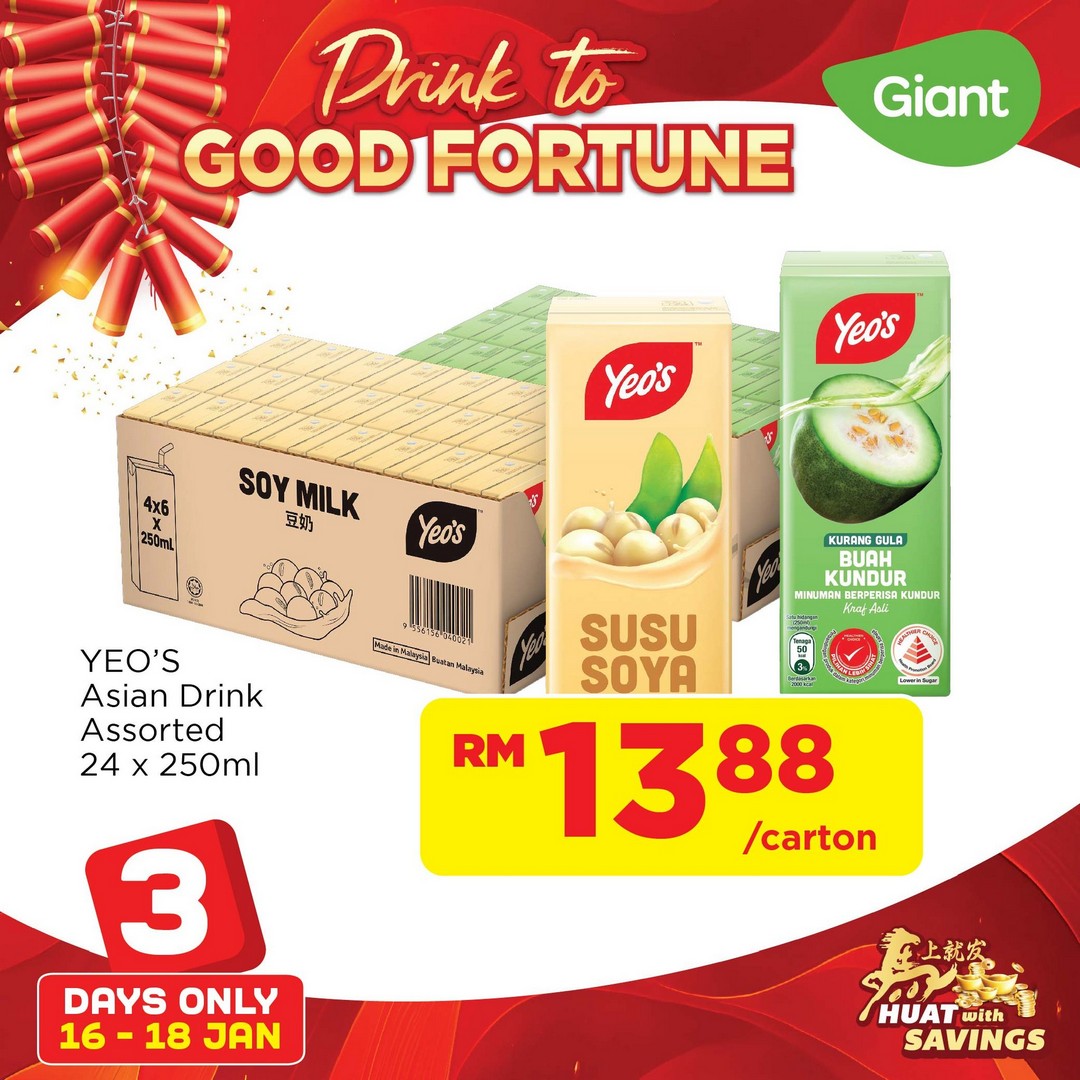Chinese New Year is a season of togetherness, laughter, and a little indulgence, and Giant Malaysia is making it easier than ever to bring festive cheer to every gathering. From 16 to 18 January 2026, shoppers can enjoy an exclusive three-day promotion on refreshing drinks, perfect for family reunions, open houses, and festive toasts. This limited-time treat is designed to ensure that the celebrations feel complete, with drinks that are not only delicious but also add a splash of fun to the festive season.