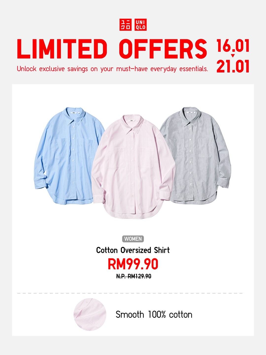 Additionally, UNIQLO’s focus on comfort and innovation sets them apart. Their AIRism and HEATTECH fabrics are a testament to this. AIRism keeps you cool and dry during Malaysia’s humid days, while HEATTECH provides warmth without bulk during cooler months. During the Limited Offers, these functional items are often included at attractive prices, making it a win-win situation: you’re not only saving money but also investing in pieces that enhance your daily comfort.