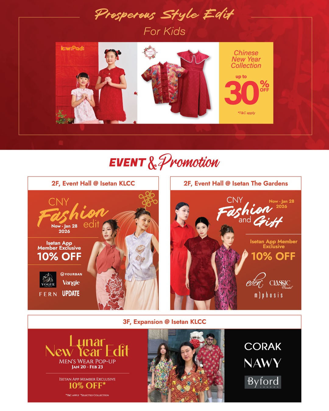 If shopping for outfits is high on your festive checklist, Isetan KL has it all neatly under one roof. From elegant attire for her to smart ensembles for him and adorable outfits for the little ones, the department store ensures that families can find something for everyone. This makes it easy for busy shoppers to tick off their festive wardrobe list in a single visit, saving both time and effort. Isetan KL’s clothing selections are carefully curated to balance traditional styles with modern trends, ensuring that everyone can look their best as they welcome prosperity into their homes.