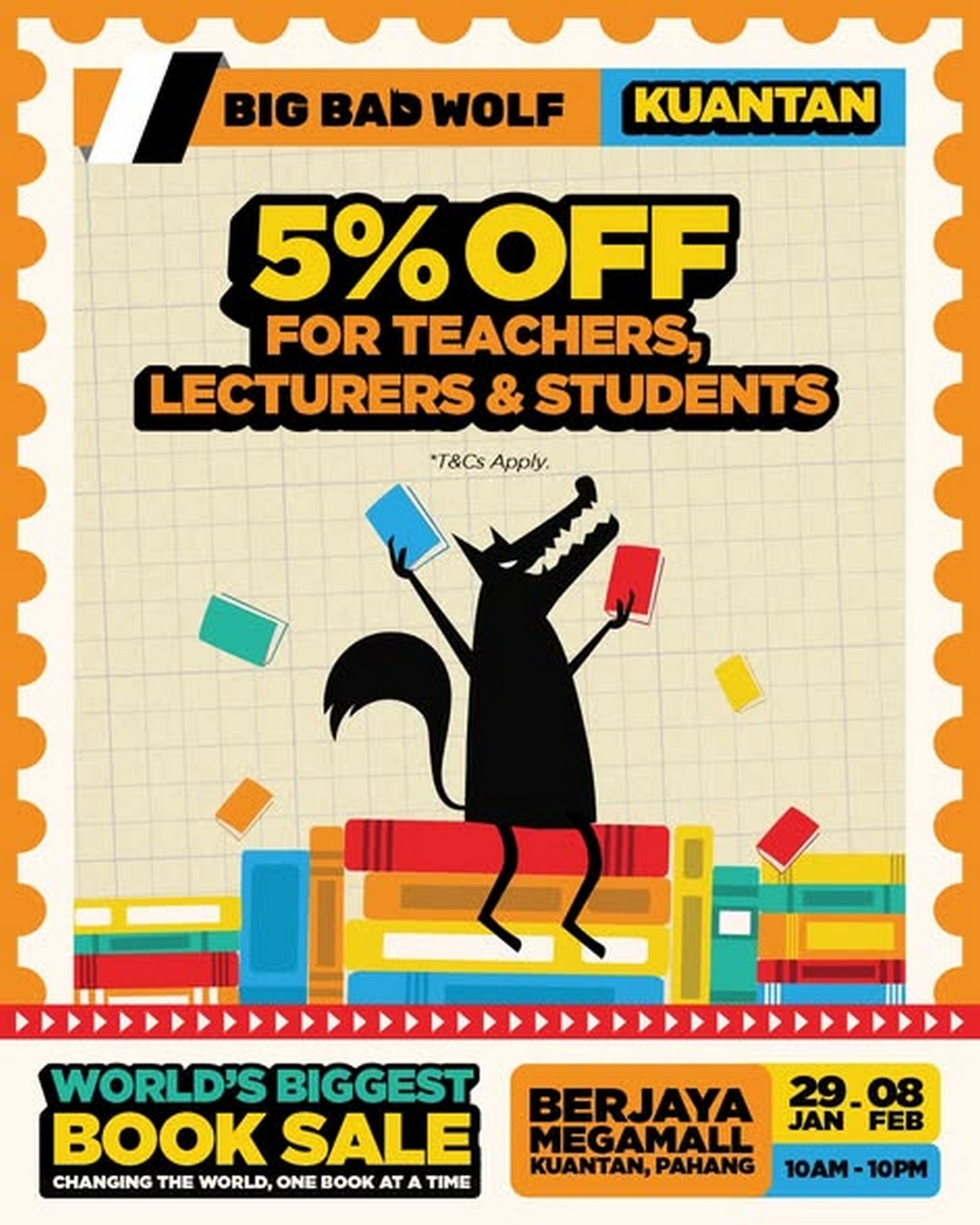 So mark your calendars, bring your IDs, gather at least three books, and dive into a world of stories, knowledge, and discovery. Whether you’re a teacher, a student, or simply someone who loves books, the Big Bad Wolf Books promotion in Berjaya Megamall, Kuantan is your gateway to exceptional bargains and countless hours of reading enjoyment. Don’t let this opportunity pass by – your next favourite book could be waiting on the shelf.
