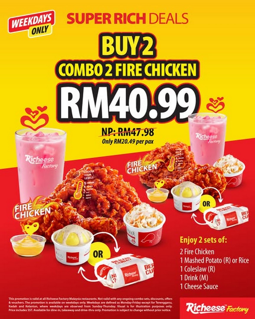 So, mark your calendar and prepare your appetite. Whether you are a long-time fan or a newcomer to Richeese Factory, the Fire Chicken combo deal is a perfect opportunity to indulge in something thrilling, delicious, and budget-friendly. Grab a friend, pick your preferred outlet, and get ready for a spicy, satisfying meal that is sure to brighten up your weekday dining experience.