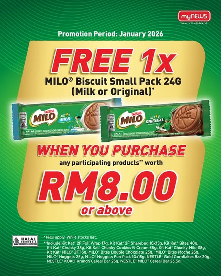 Another appealing aspect of this deal is how accessible it is. myNEWS outlets are located conveniently across Malaysia, which means that whether you’re in the city centre, shopping mall, or residential neighbourhood, you’re likely never too far from a participating store. That makes it simple to pop in, grab your favourite Nestlé treats, and claim your free Milo Biscuit without having to plan a special trip.
