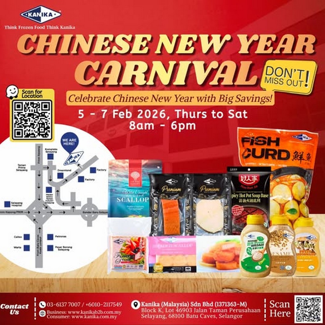 In summary, the Kanika Chinese New Year Carnival is more than just a sale—it’s a comprehensive solution for Malaysians looking to prepare for the festive season efficiently, economically, and with confidence. By attending, shoppers benefit from competitive pricing, exclusive promotions, premium product quality, convenience, and the chance to explore a variety of frozen and ready-to-cook foods that will impress family and friends alike. With both B2B and B2C offers, easy registration, and a welcoming venue, this event is designed to make the Chinese New Year shopping experience smooth and enjoyable.