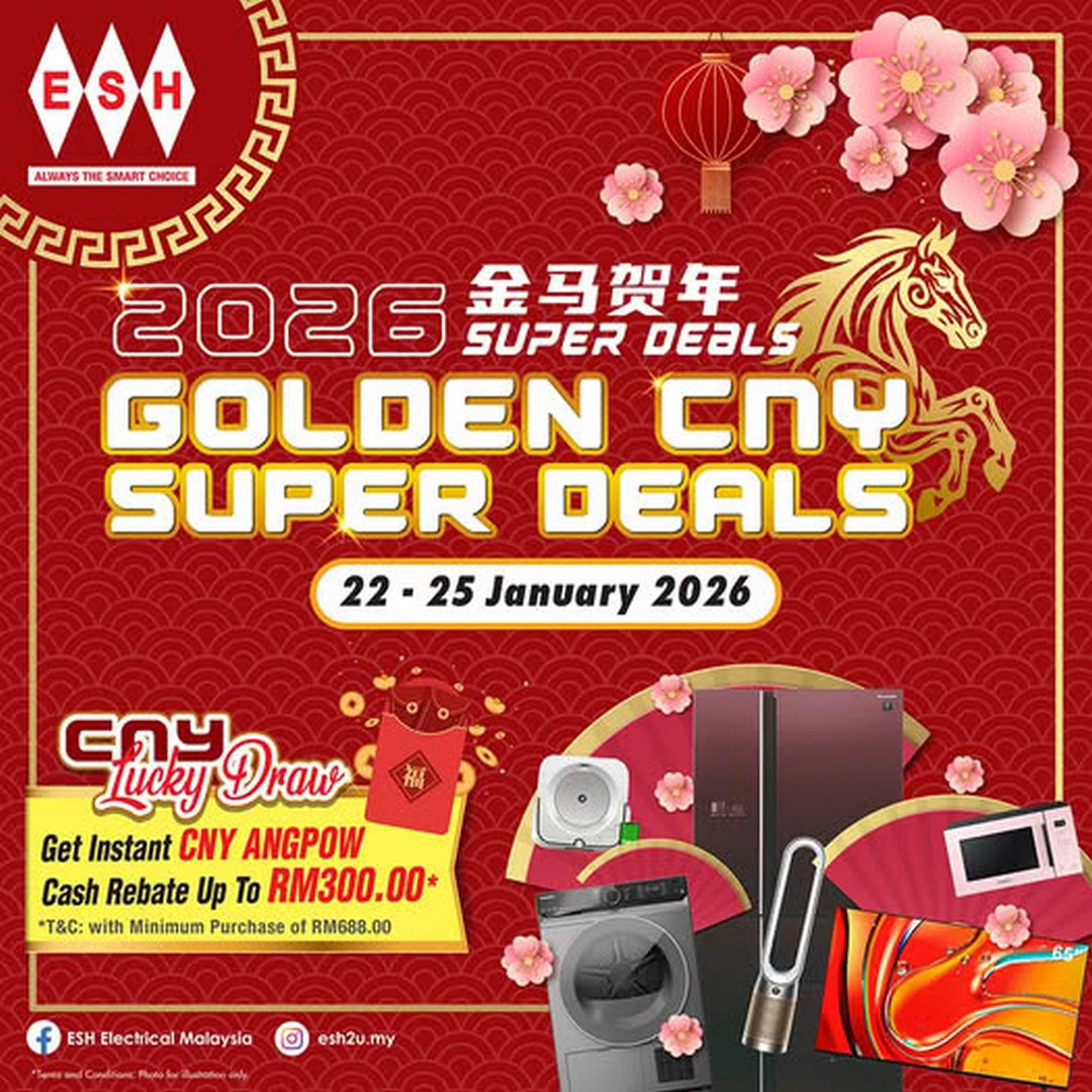 Chinese New Year is always the perfect time to bring a little extra joy to your home, and for those who have been eyeing quality electrical appliances at unbeatable prices, ESH Electrical Malaysia is making this festive season even more exciting. From 22 to 25 January 2026, ESH is rolling out their Golden CNY Super Deals, a limited-time promotion that combines festive cash rebates with a lucky draw that could see you walking away with some truly exciting prizes.