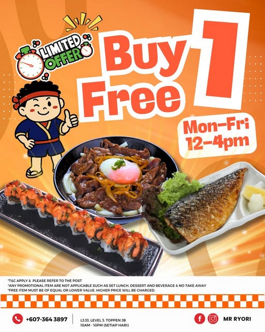 In a time when dining out is becoming more expensive, promotions like this remind diners that good value still exists. Mr Ryori’s limited-time Buy 1 Free 1 offer is not just about saving money, but about enjoying a better lunch experience. It is a timely reminder that sometimes, the best deals are found by those who take the time to explore and plan their meals wisely.