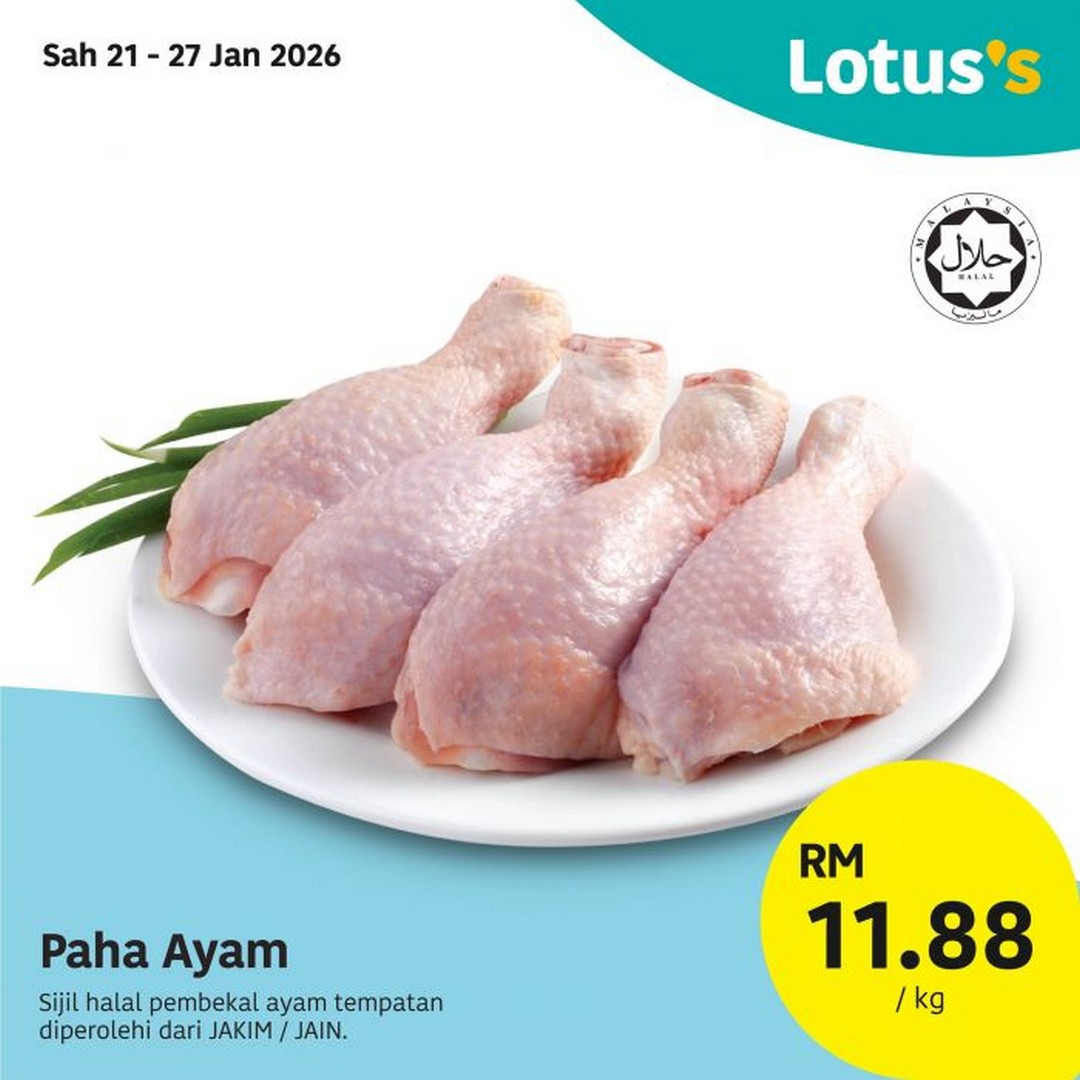 Chicken Drumsticks (Paha Ayam): RM 11.88 per kg – Perfect for curries, soups, or oven-baked recipes, these drumsticks offer excellent value.