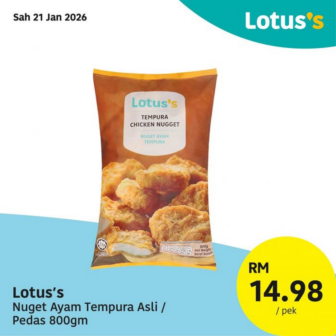 Lotus’s Tempura Chicken Nugget 800gm: RM 14.98 per pack – Crispy, tasty, and perfect for quick family meals.
