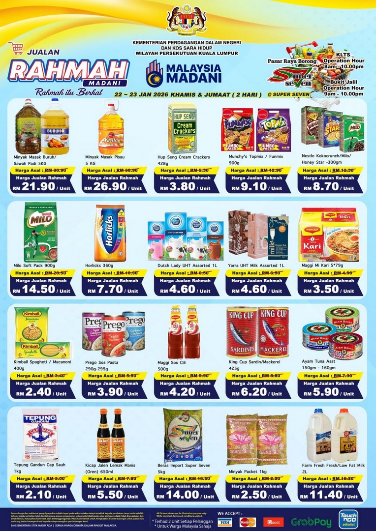 Super Seven’s “Jualan Rahmah Madani” is a perfect blend of affordability, convenience, and community-focused initiative. With the breadth of items on offer—from fresh produce to pantry staples and household necessities—this sale provides an excellent opportunity to shop smartly and save big. It is a chance for families to prepare nutritious meals, stock up essential items, and enjoy meaningful savings, all while supporting a government-backed initiative aimed at easing the cost of living in Kuala Lumpur.