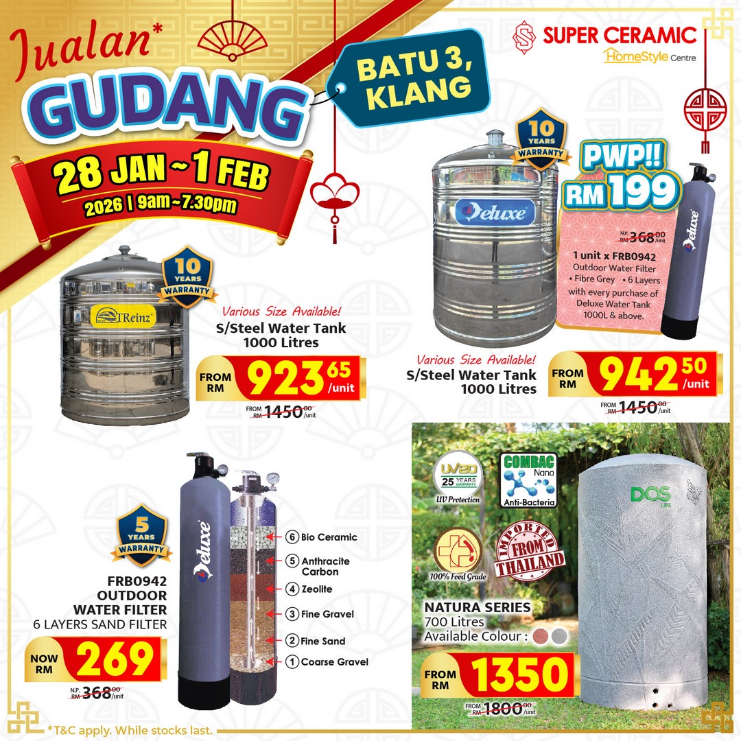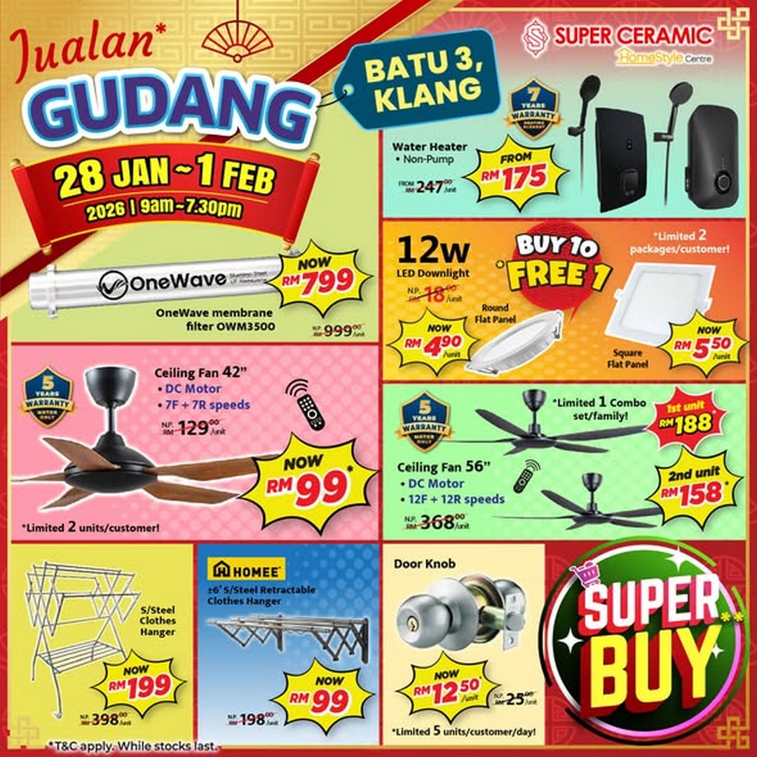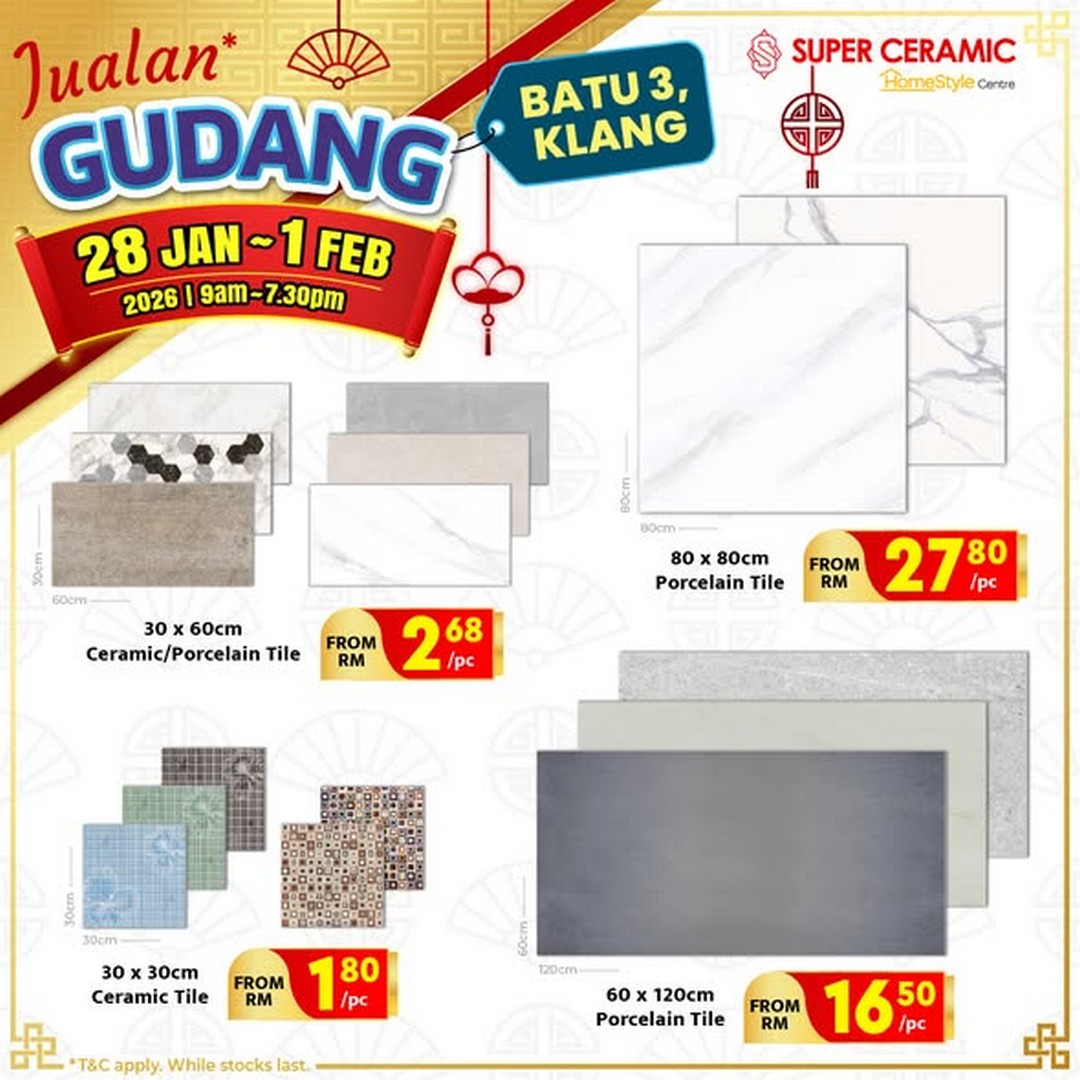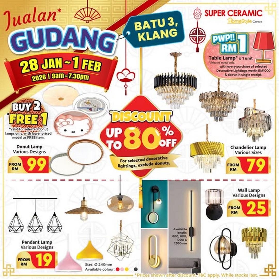 In conclusion, the Super Ceramic warehouse sale in Klang Batu 3 is more than just a shopping event; it is a chance to upgrade your home with high-quality products at unbeatable prices. With extensive stock, competitive pricing, and the opportunity to see and choose items in person, this sale promises a rewarding experience for anyone looking to improve their living space. From tiles and doors to lights, fans, and bathroom essentials, there’s something to appeal to every homeowner. Mark your calendars, plan your visit, and get ready to explore one of the best home improvement sales happening in Malaysia this year.