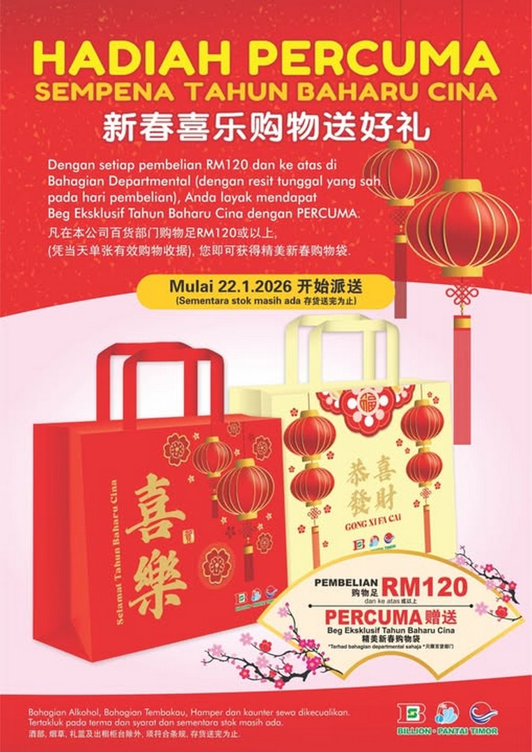 In summary, the Billion Malaysia Chinese New Year free gift promotion is an excellent opportunity for anyone planning to shop for the festive season. Spending RM120 or more in the departmental section not only ensures you have what you need for the celebrations but also rewards you with a beautifully designed exclusive bag. Early shoppers will have the advantage of securing the gift before it runs out, making it a compelling reason to plan your visit to Billion Malaysia at Pantai Timur. With careful planning, thoughtful purchases, and a little festive excitement, shoppers can enjoy a truly rewarding experience this Chinese New Year.