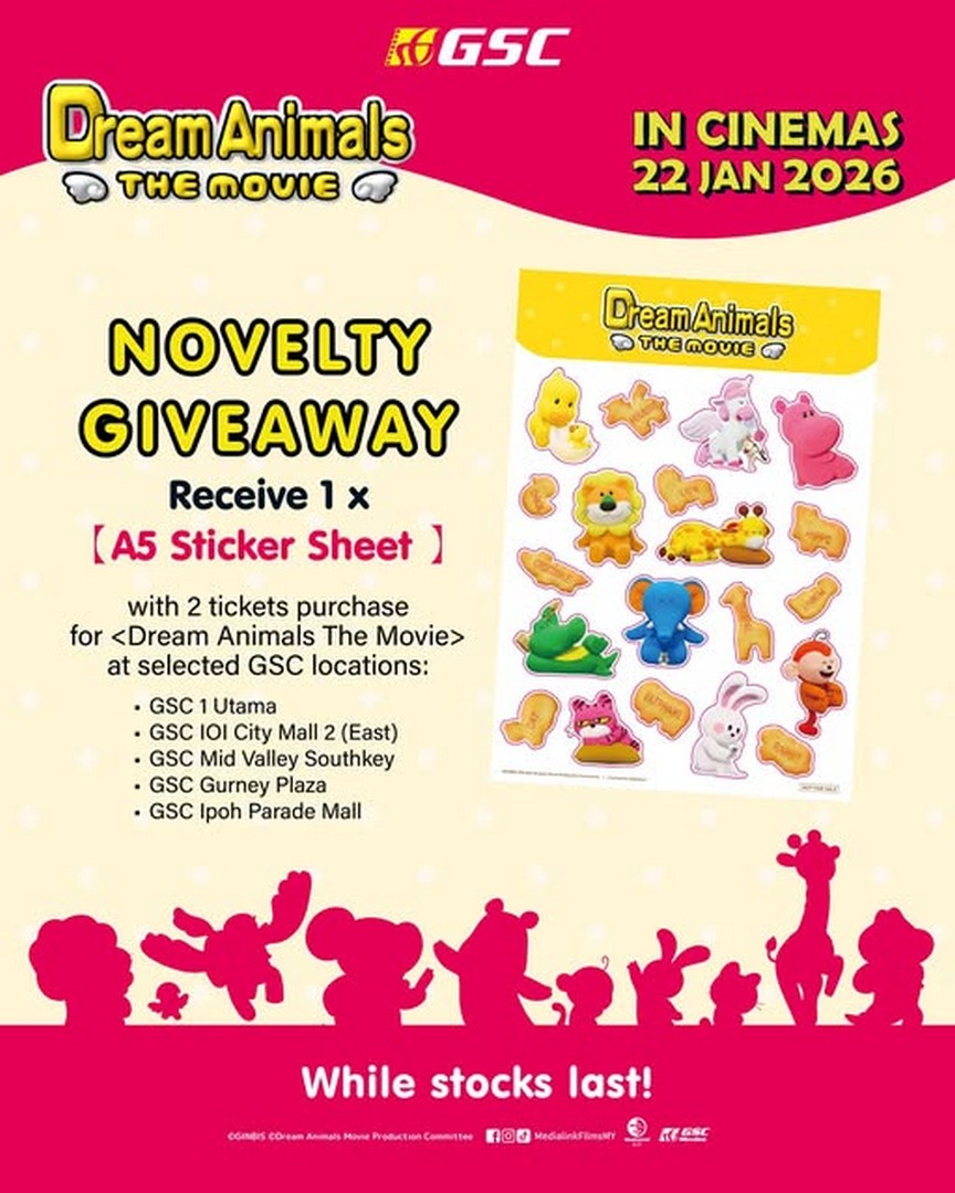 Movie lovers and collectors, here’s a promotion that’s bound to make your day a little brighter! Golden Screen Cinemas (GSC) Malaysia is offering a delightful treat for cinema-goers: a FREE A5 sticker sheet featuring the adorable characters from Dream Animals The Movie. This is a perfect opportunity for families, friends, and fans of cute collectibles to combine their love of movies with a fun keepsake.