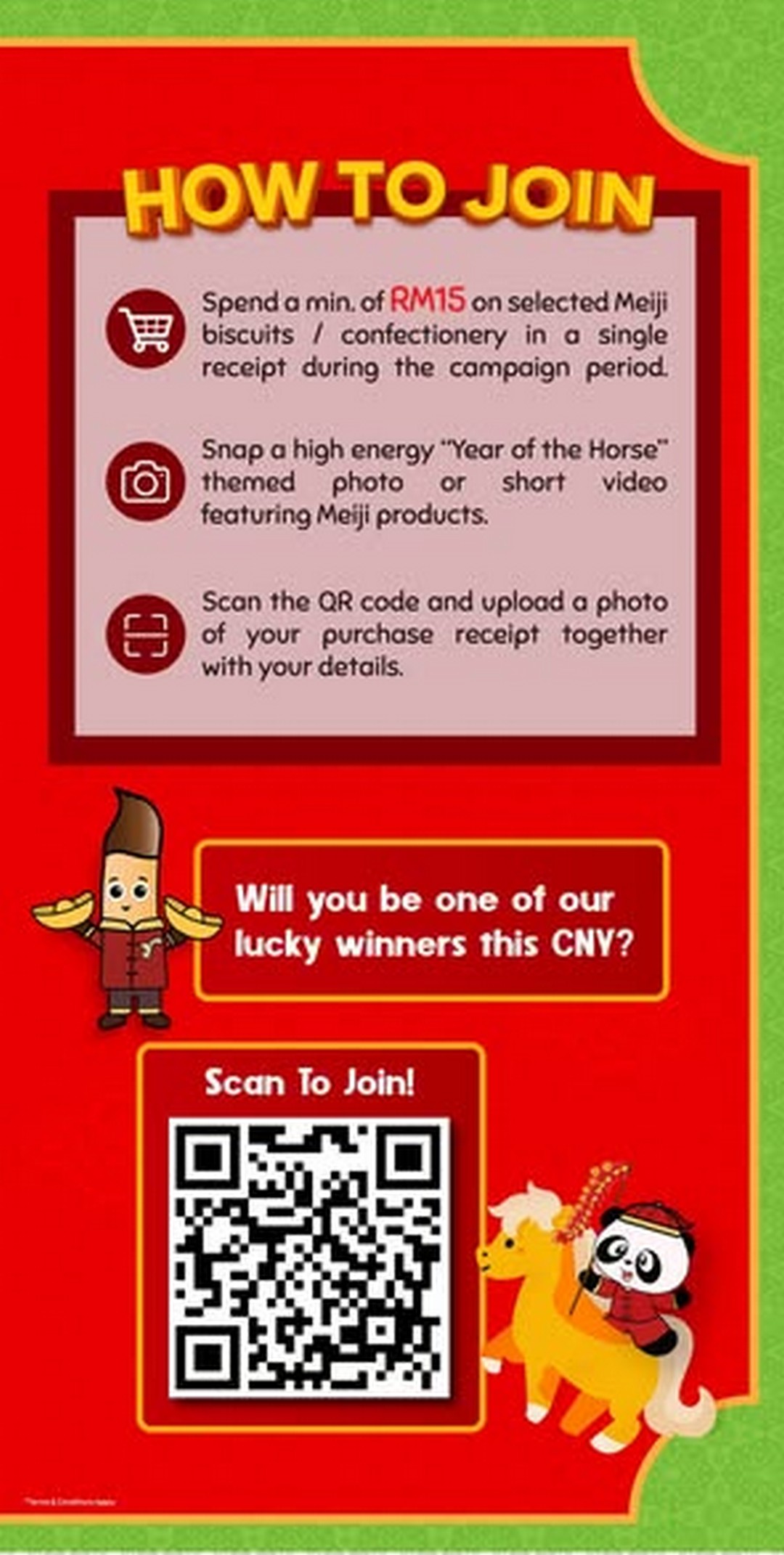 Once the purchase is made, participation becomes part of the fun. Shojikiya encourages shoppers to get creative by taking a lively photo or video featuring Meiji snacks with a Year of the Horse theme. This playful element adds a festive touch to the campaign and makes it more engaging than a standard lucky draw. Families can get involved, friends can pose together, and even solo shoppers can enjoy coming up with a creative shot. It turns a simple shopping trip into a festive activity.