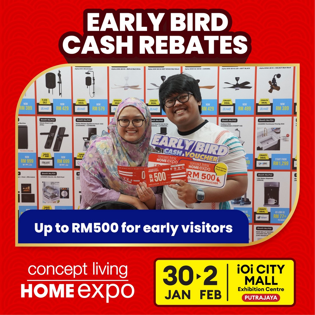 Additional Information: Doors open at 11:00 AM daily. Early bird cash rebates of up to RM500 are available for the first 50 visitors each day, while stocks and eligibility last.