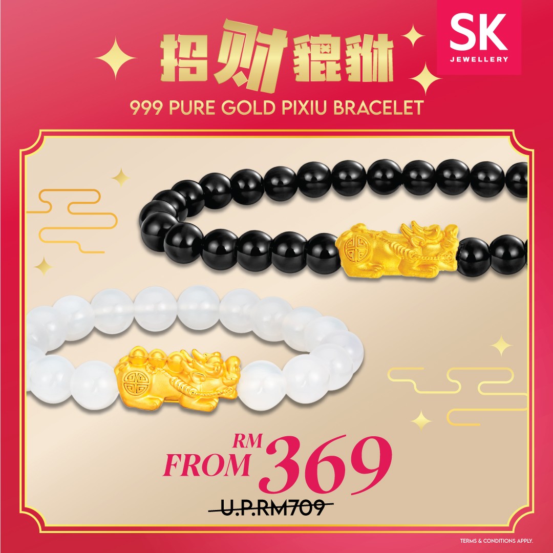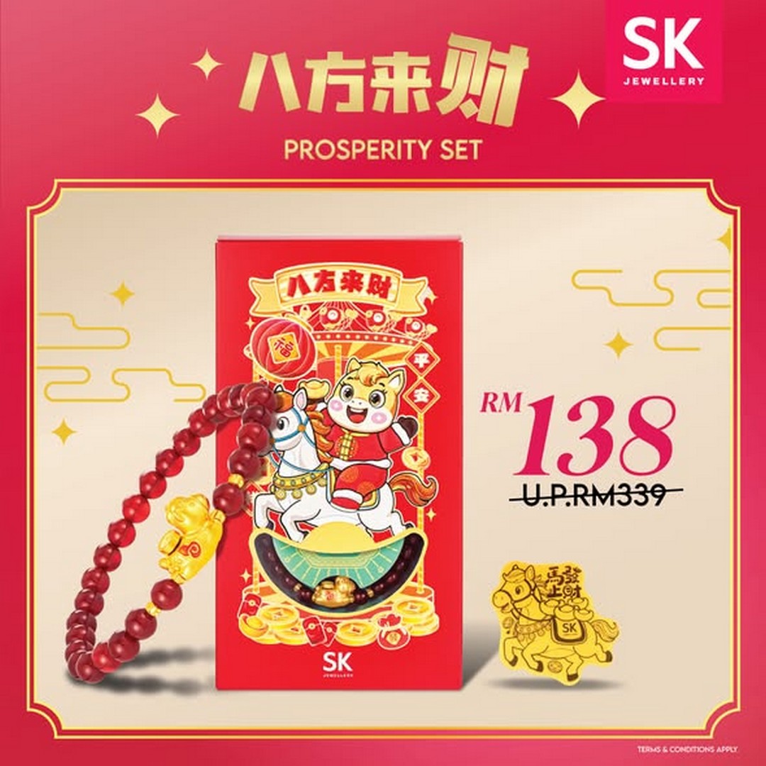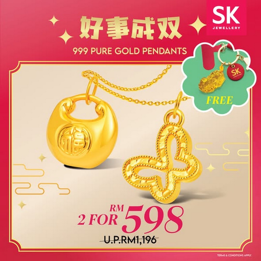 Those looking for symbolic sets that exude prosperity will be delighted with the Prosperity Set priced at RM138. It’s an elegant choice for gifting or for marking meaningful milestones. And for those seeking something truly substantial, SK Jewellery is offering 2 x 999 Pure Gold Pendants with a free 925 Chain and Pixiu Keychain collectible for RM598. Pixiu is traditionally known as a symbol of wealth and protection, so combining it with high-quality gold jewellery makes this offer both valuable and culturally significant.