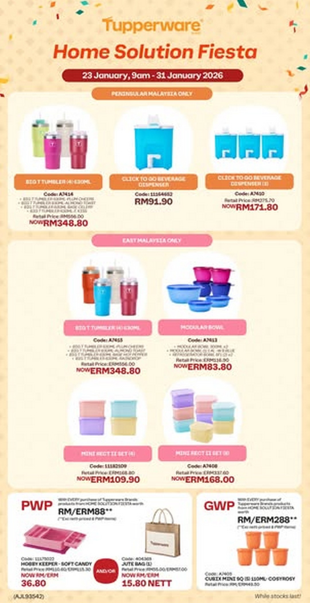 Whether it’s for personal use, organising your home efficiently, or gifting friends and family, this promotion makes it easy to find items that cater to a variety of needs. The combination of high-quality products, significant discounts, and exclusive GWP and PWP deals means there’s never been a better time to explore Tupperware’s offerings. Customers are encouraged to act quickly, as these deals are only available while stocks last.