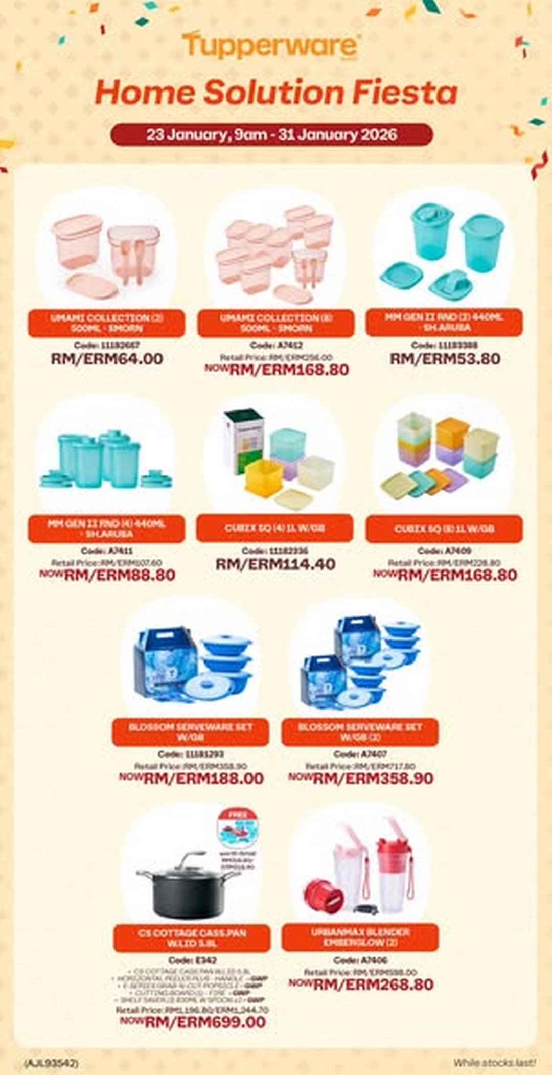 In summary, Tupperware Malaysia’s Home Solution Fiesta is more than just a sale—it’s a chance to upgrade your kitchen, streamline your daily routines, and enjoy exclusive offers that add extra value to each purchase. With limited-time discounts and thoughtful promotions running from 23 to 31 January 2026, this event is perfect for anyone looking to combine practicality, quality, and style without stretching their budget.