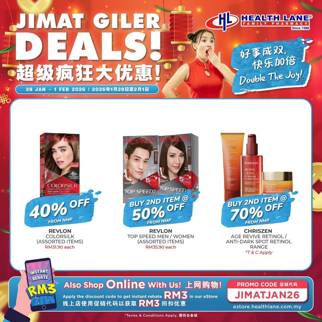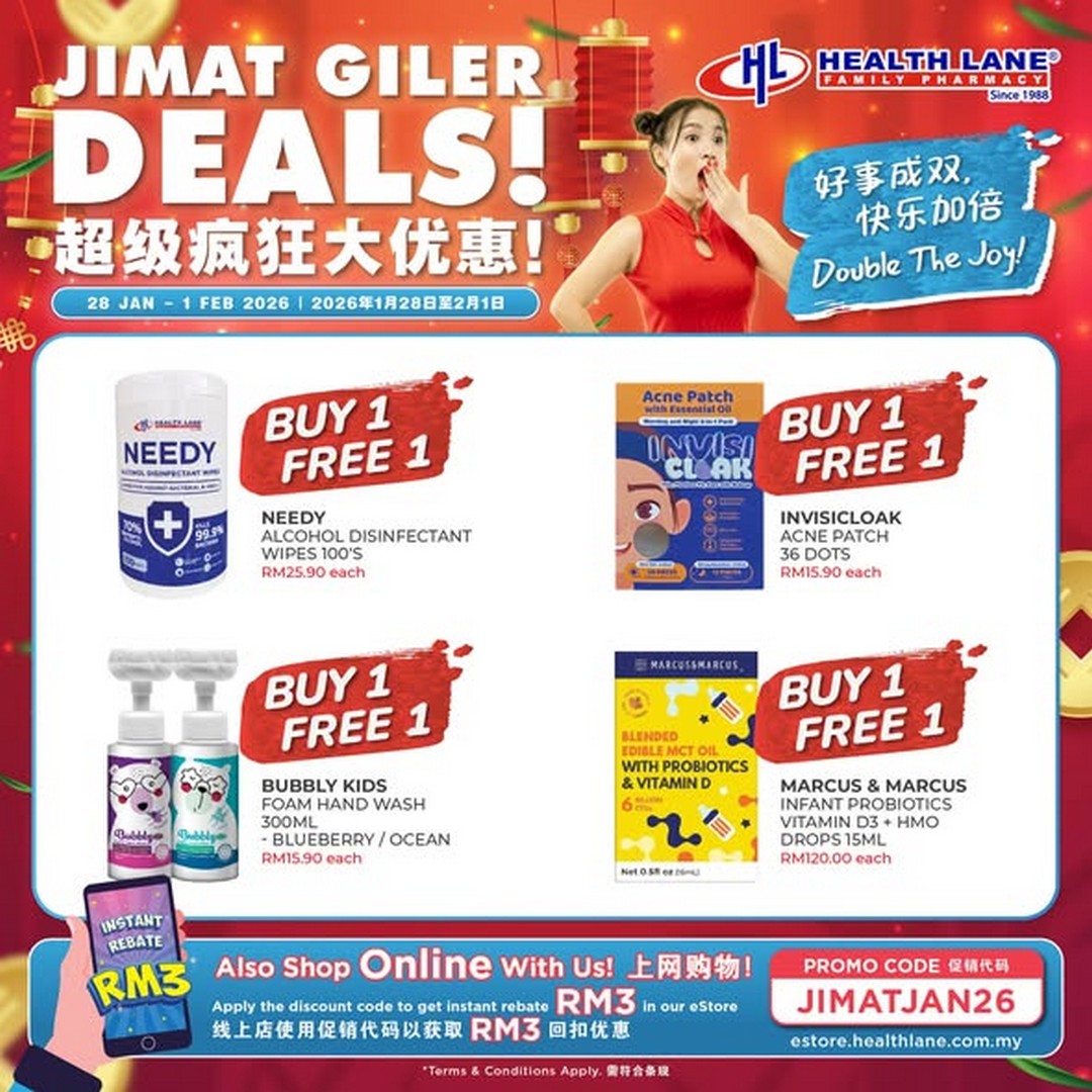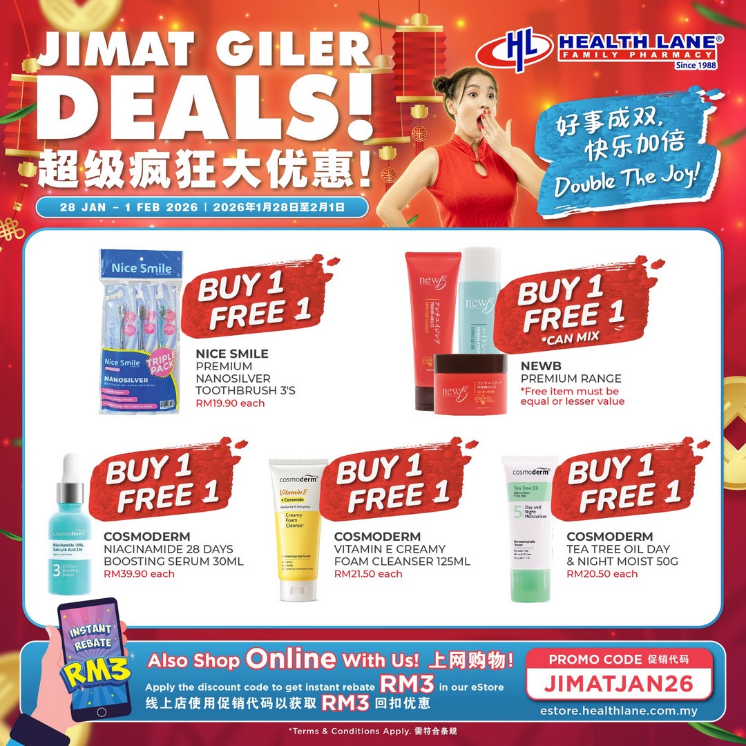 Chinese New Year is just around the corner, and if you are the type who loves to shop smart and save big, Health Lane Family Pharmacy Malaysia has something you absolutely cannot miss. From 28 January to 1 February 2026, they are rolling out the “Jimat Giler Deals”, a pre-CNY promotion designed to help shoppers double the fun, double the savings, and grab exclusive festive perks before the holiday rush.