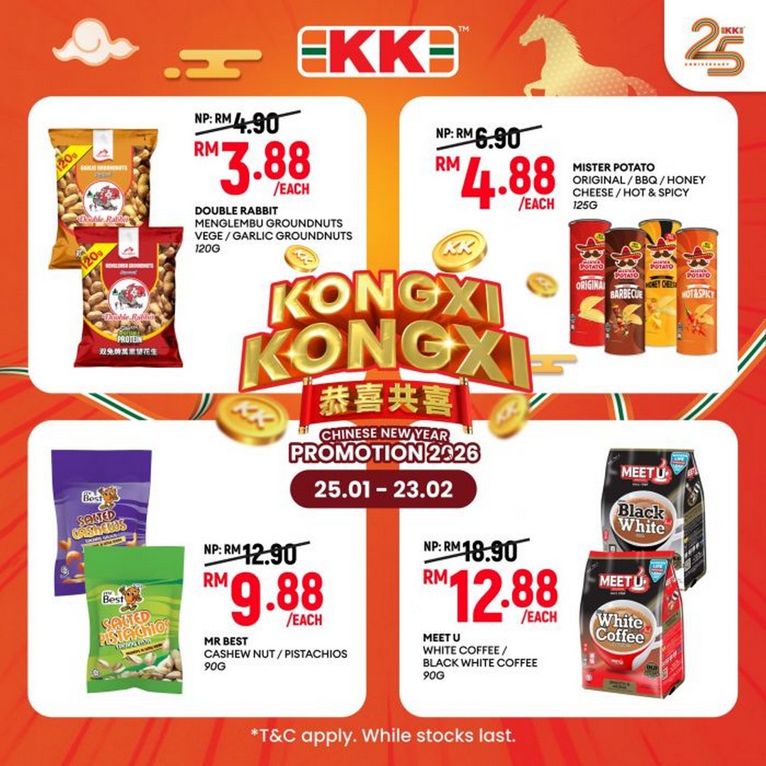 So, mark your calendars and plan your visit. From stocking up on Coca-Cola and Pepsi to filling your snack trays with Mister Potato Crisps, Double Rabbit Groundnuts, and Snickers, you’ll find everything you need to create a joyful and memorable Chinese New Year for your family and guests. Take advantage of these offers and make this festive season one to remember with KK Super Mart.