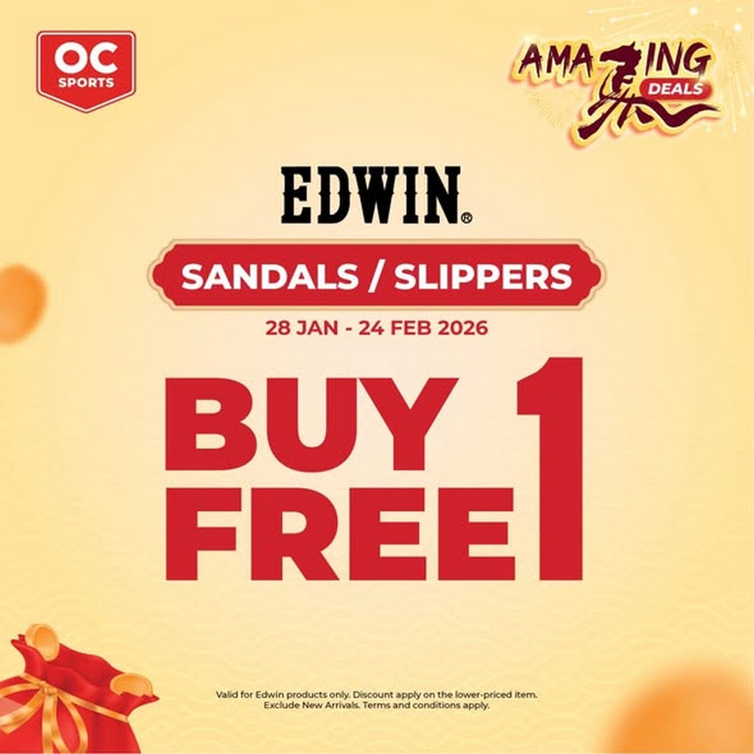 Beyond sports shoes, the promotion also caters to households looking for practical and comfortable home footwear. The Buy 1 Free 1 deal on Edwin sandals and slippers is a standout feature, especially during Chinese New Year when guests frequently visit and family members spend more time at home. Having extra pairs of slippers is not only practical but also a thoughtful way to prepare for festive gatherings. This deal allows shoppers to get double the value without doubling their spending, making it ideal for families.