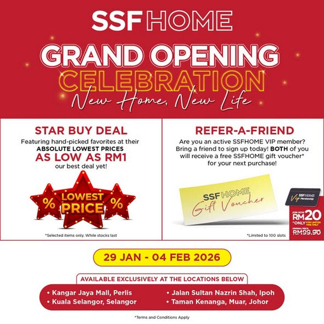 Overall, the SSFHOME Malaysia Grand Opening Celebration from 29 January to 4 February 2026 is more than just another sale. It is a carefully structured promotion that blends sharp pricing, social incentives, and regional accessibility. For shoppers who enjoy finding genuine value and making informed purchasing decisions, this event is well worth a visit. With limited slots for VIP rewards and Star Buy items priced from RM1, acting early could make all the difference between securing a great deal and missing out.
