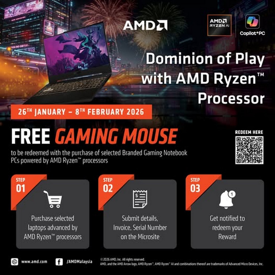 Gamers, tech enthusiasts, and those looking to upgrade their computing setup are in for a treat at ALL IT Hypermarket Malaysia. From 26th January to 8th February 2026, ALL IT is running a special promotion for fans of high-performance gaming laptops. Here’s the deal in a nutshell: purchase selected gaming notebooks powered by AMD Ryzen™ processors, and they will gift them a FREE gaming mouse.