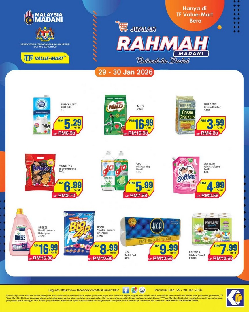 Make sure to mark your calendars for 29th and 30th January 2026, and head to TF Value-Mart Bera to make the most of the Jualan Rahmah Madani. The combination of affordability, convenience, and variety is what makes this event truly special. Don’t miss out—the savings are significant, and the products are essential for daily life.