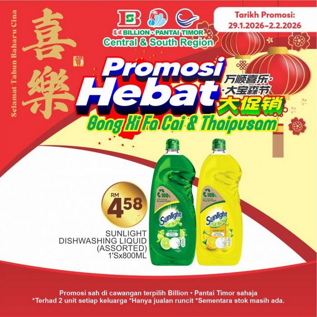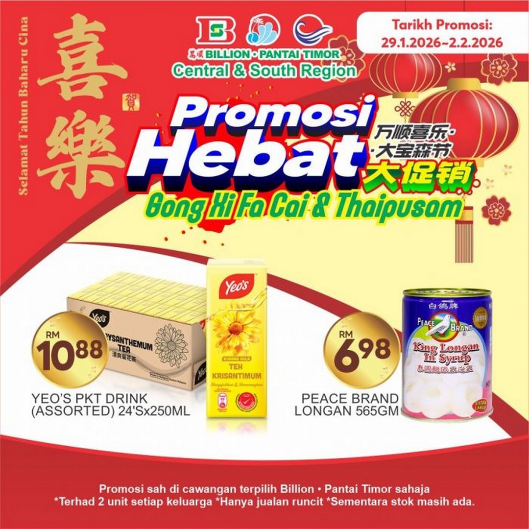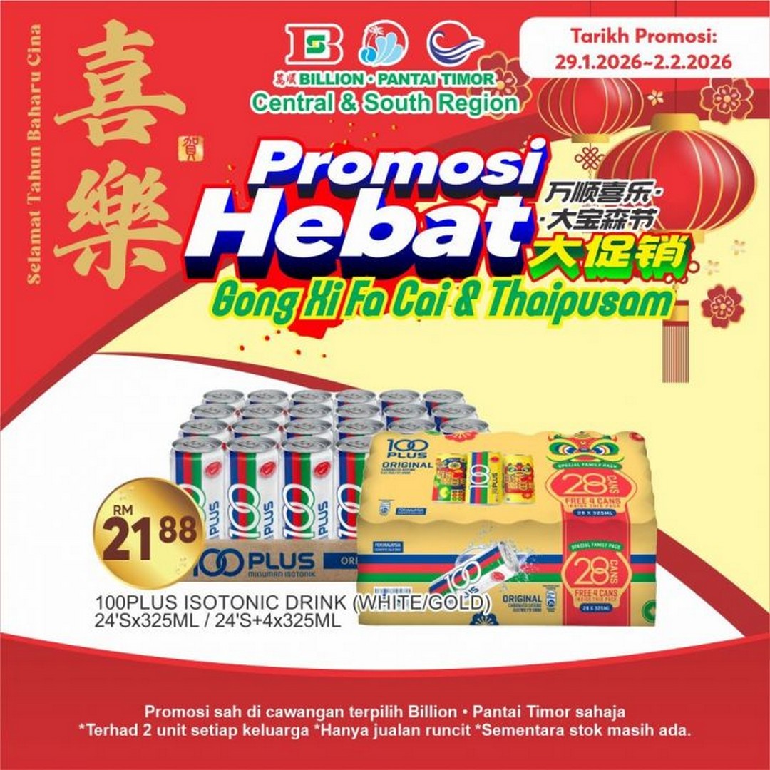The festive season in Malaysia is always a time of excitement, gatherings, and of course, great shopping deals. As the Lunar New Year and Thaipusam celebrations approach, Billion and Pantai Timor are rolling out their much-anticipated “Promosi Hebat” to help shoppers prepare for both festivities without straining their wallets. From 29 January to 2 February 2026, customers can enjoy substantial savings on a wide range of items, from festive drinks to kitchen essentials and household cleaning products.