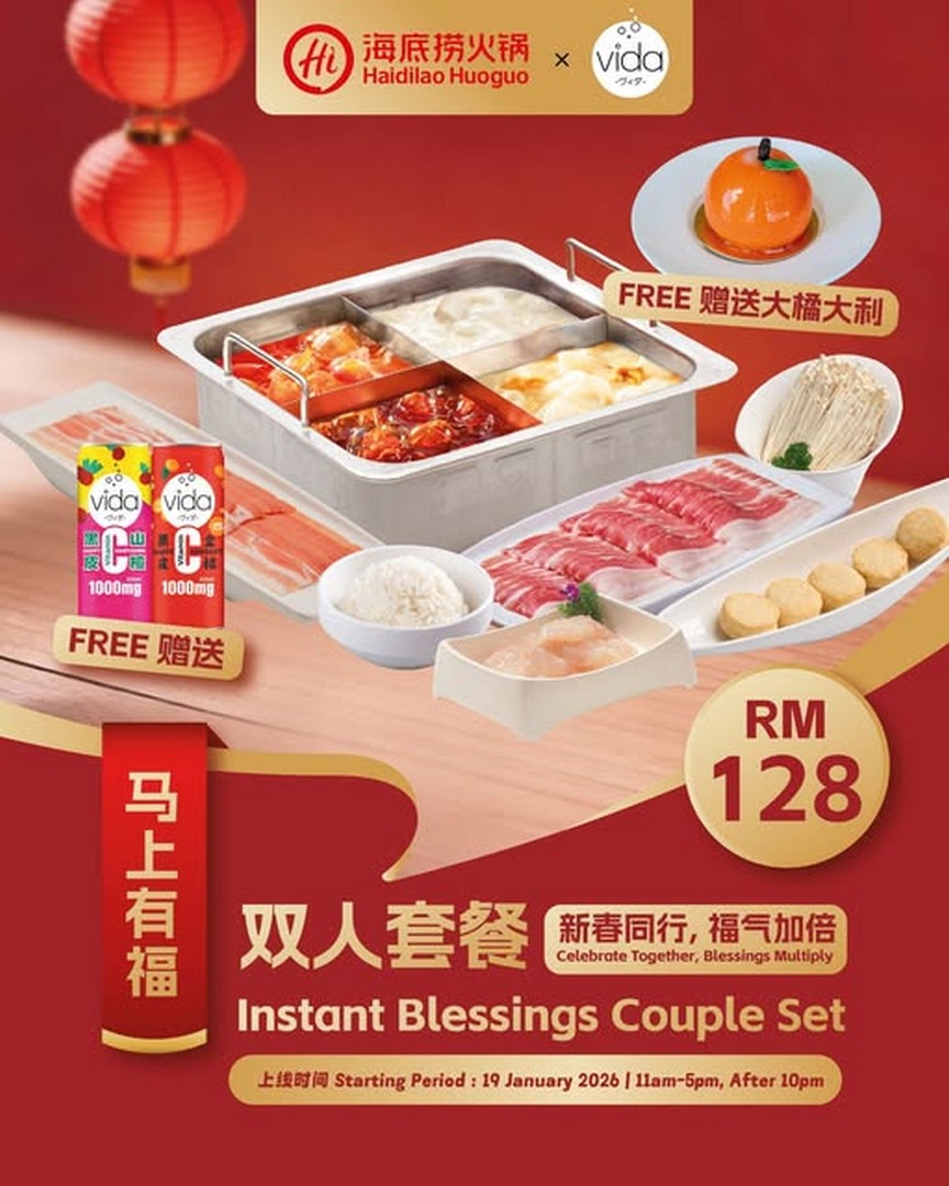 Starting from 19 January 2026 onwards, Haidilao Malaysia is offering a Couple Set Upgrade Promotion that delivers more than just a hotpot meal. Customers who order the Couple Set at RM128 will receive additional festive treats at no extra cost, turning a regular meal into a complete Chinese New Year dining experience.