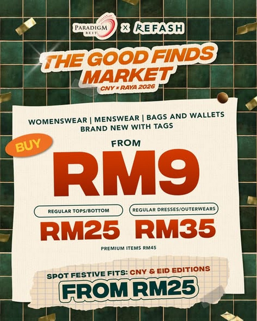 Running from 6 February to 15 March 2026 at Paradigm Mall Petaling Jaya, The Good Finds Market is more than just another shopping event. It is a thoughtfully curated marketplace designed to help shoppers refresh their wardrobes in a smarter, more sustainable, and more budget-friendly way. Instead of buying brand-new items at full price, shoppers are encouraged to explore preloved fashion that still looks great, feels current, and costs significantly less. Prices start from just RM9, making this one of the most affordable ways to shop for festive outfits without compromising on style.