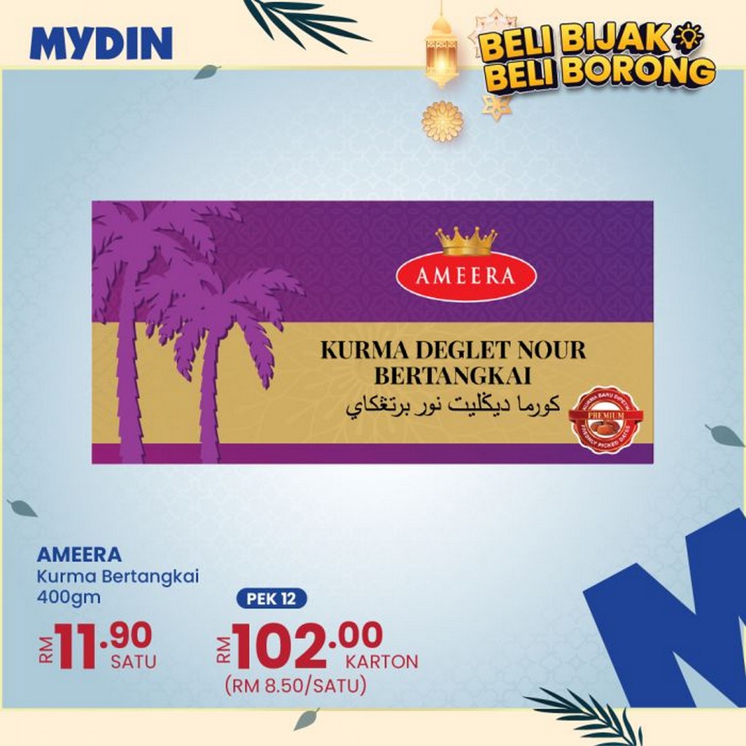 Beyond Al-Maheera, MYDIN has also included popular selections from Ameera and MyRasa, ensuring shoppers have even more choices. Ameera Kurma Boostan Bam (550gm) is priced at RM10.90 per unit, with a carton of 12 packs available for RM108.00. This option balances quality and affordability, making it suitable for daily consumption throughout the fasting month.