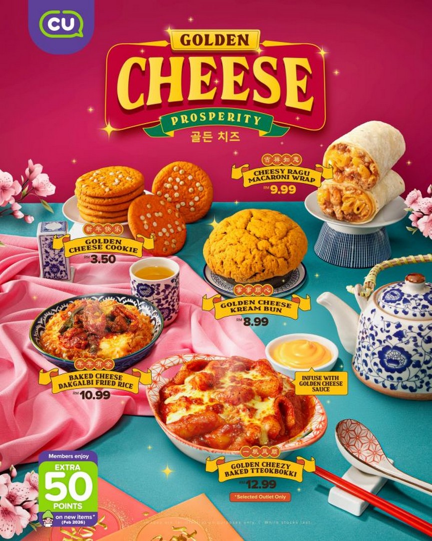 CU is going the extra mile to make the Lunar New Year even more rewarding. Members of the myNEWS app can enjoy EXTRA 50 POINTS on all items from the Golden Cheese Prosperity Menu throughout February 2026. This is an ideal opportunity to sample everything the menu has to offer while earning points for future redemptions.