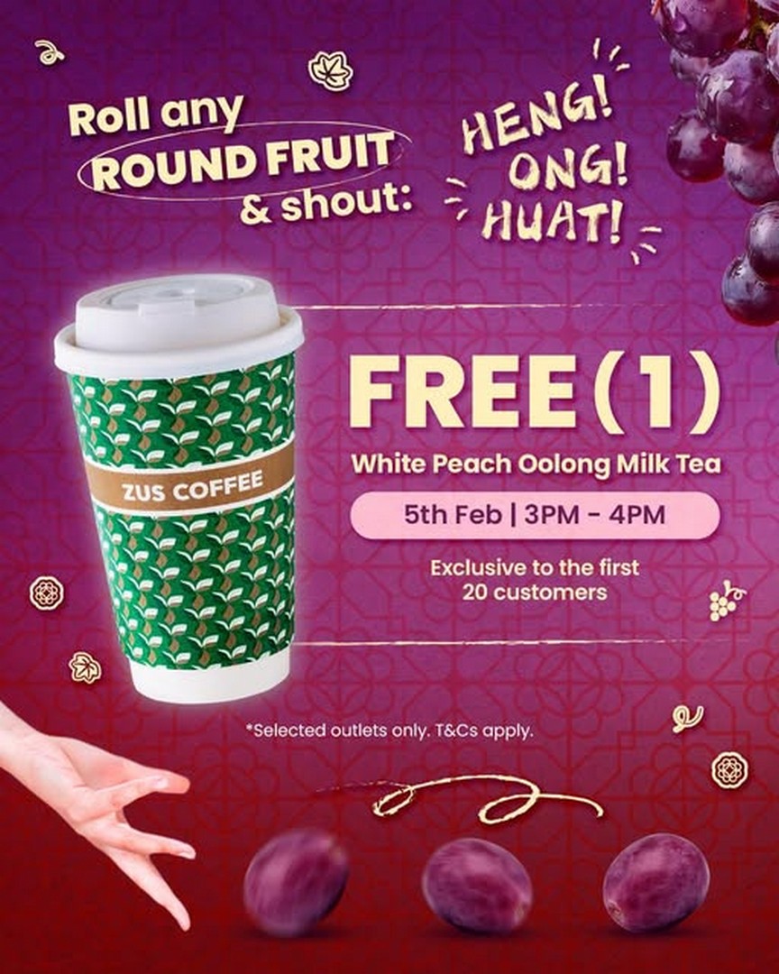 This year, ZUS Coffee is making CNY celebrations more interactive and rewarding. They are inviting everyone to participate in a unique, fun-filled tradition at selected ZUS outlets by simply rolling any round fruit in-store and claiming a free White Peach Oolong Milk Tea. It’s a simple, delightful way to engage with the CNY spirit while enjoying one of their refreshing beverages.