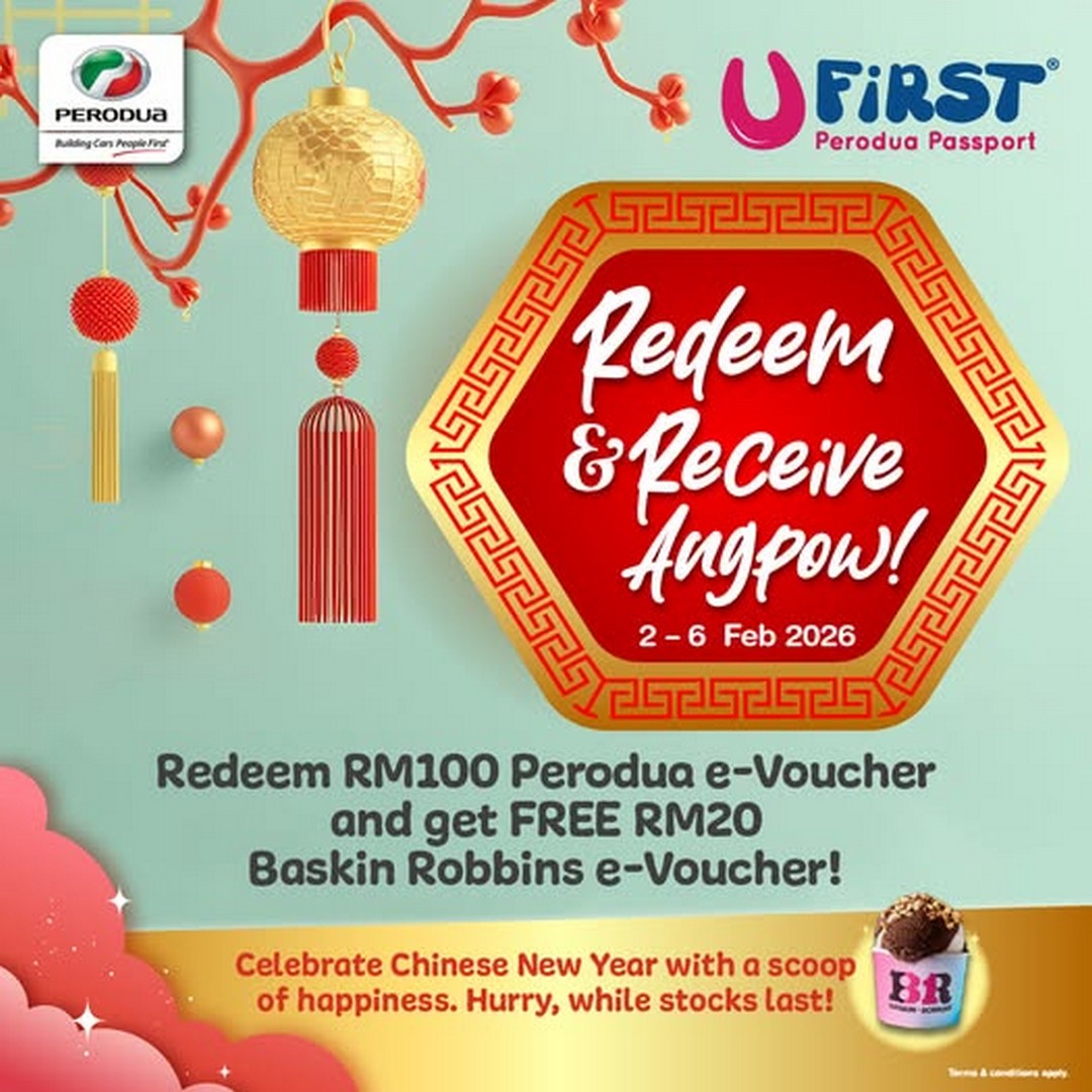 Perodua has long been known as a brand that understands Malaysian households. Whether it is supporting car ownership, servicing needs, or offering customer rewards, they often keep things practical and accessible. This Chinese New Year promotion continues that approach. Instead of complicated mechanics or difficult redemption steps, Perodua keeps it simple. Redeem a RM100 e-Voucher, and enjoy an additional RM20 e-Voucher from Baskin Robbins, while stocks last.